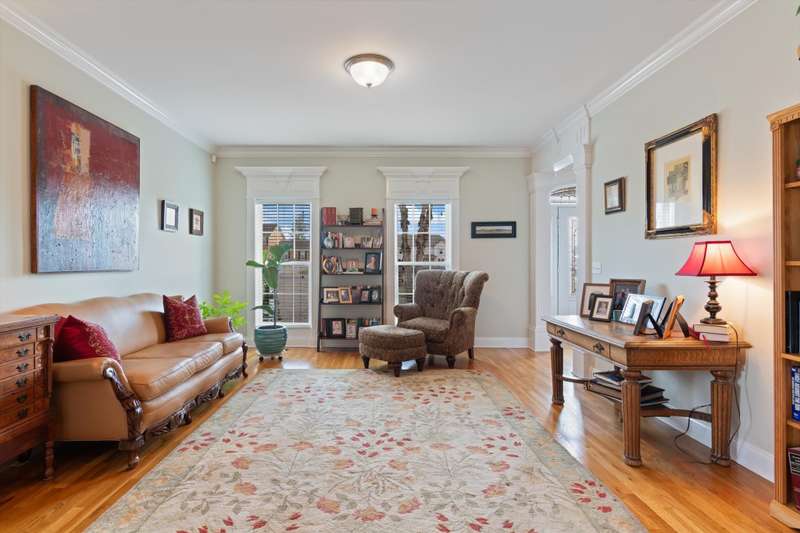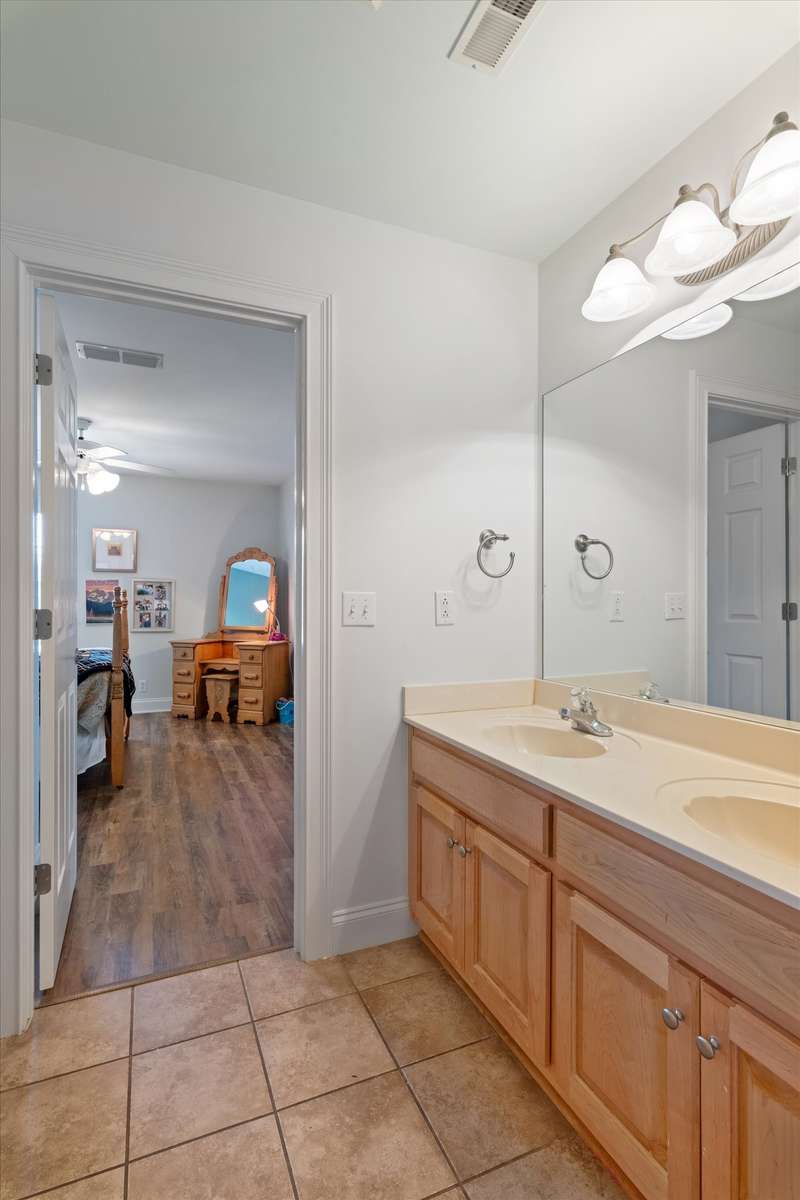 The home also boasts a total of 3.5 well-appointed bathrooms throughout. Upstairs, two bedrooms share a Jack-and-Jill full bathroom, while another bedroom connects to its own full-bath, offering privacy and convenience.