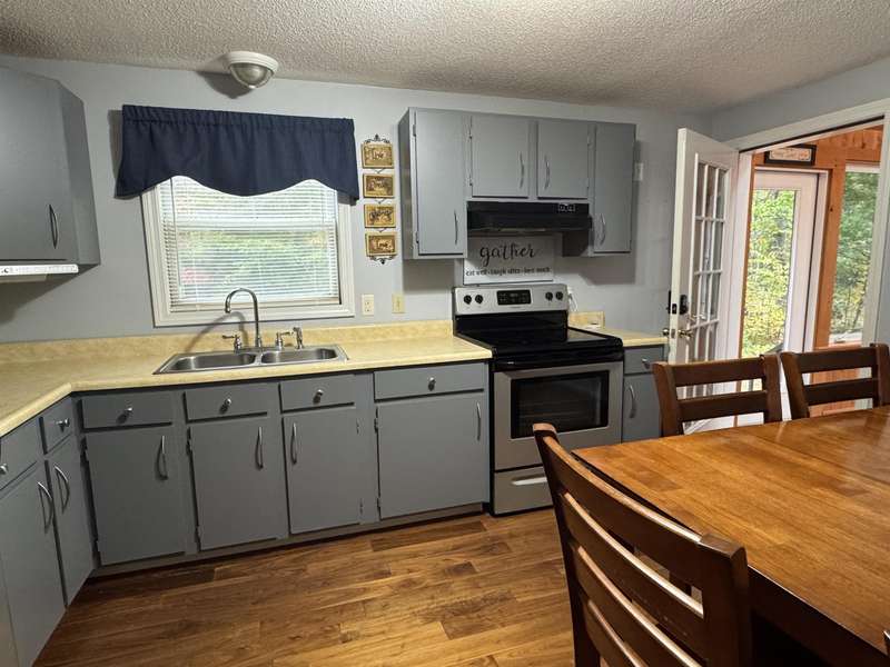 4 BEDROOM DORMERED CAPE. This desirable home is very well cared for and boasts of many significant upgrades. A four-season addition warmed by a propane stove provides plenty of sunlight & living space with skylighted cathedral ceilings. Currently used as a dining room, and ideal as a family room adding more bright space to a traditional layout. The eat-in style kitchen has stainless appliances and opens up to a cozy living room before heading upstairs. Two spacious bedrooms and full bath on each floor. second floor bedrooms are front-to-back and overlook the large back yard. The first floor bedrooms, allow for floorplan flexibility if looking for extra sleeping or private office space or craft rooms. $5,000 Seller credit towards upstairs carpets & bathroom linoleum to refresh what's left on owners' "to do" list. A full basement with plenty of room to finish off, also hosts the laundry and systems. New furnace with air conditioning keeps the home warm in the winter and cool in the summer. Located on almost an acre of level land and nice privacy. A large, detached snow mobile shed has front and back doors for added convenience, or would make a great workshop, she-shed or studio space with its electricity and connection to the house alarm system. As part of the Academy school district, this convenient Fryeburg home is off Rt 302 on a side street that provides easy access to Bridgton village, Pleasant Mountain and Moose Pond, for even more year-round amenities.