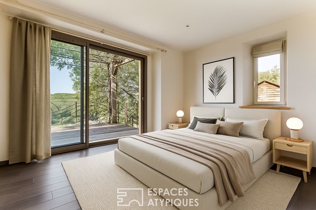 In the heart of a preserved environment, on the edge of the majestic Gresigne forest, this former farmhouse and barn has been converted into several independent and harmonious living spaces, designed to combine comfort, conviviality, and art de vivre.