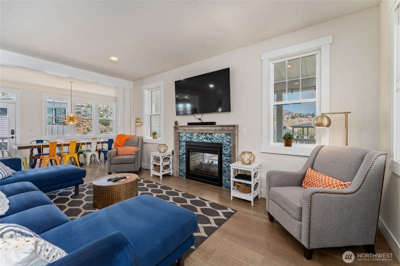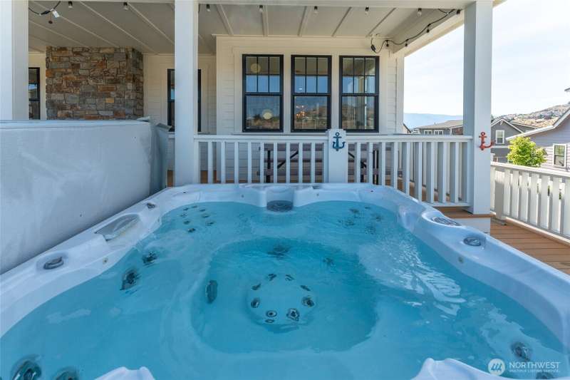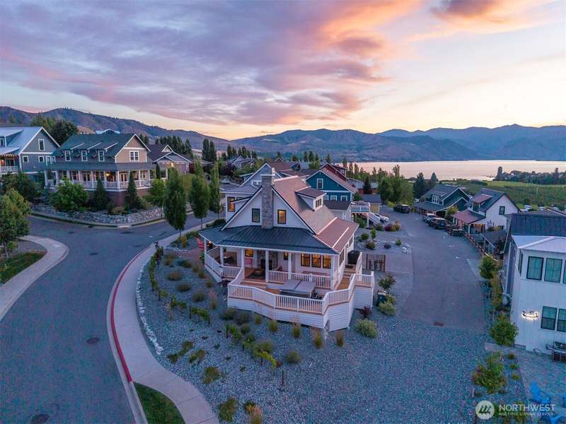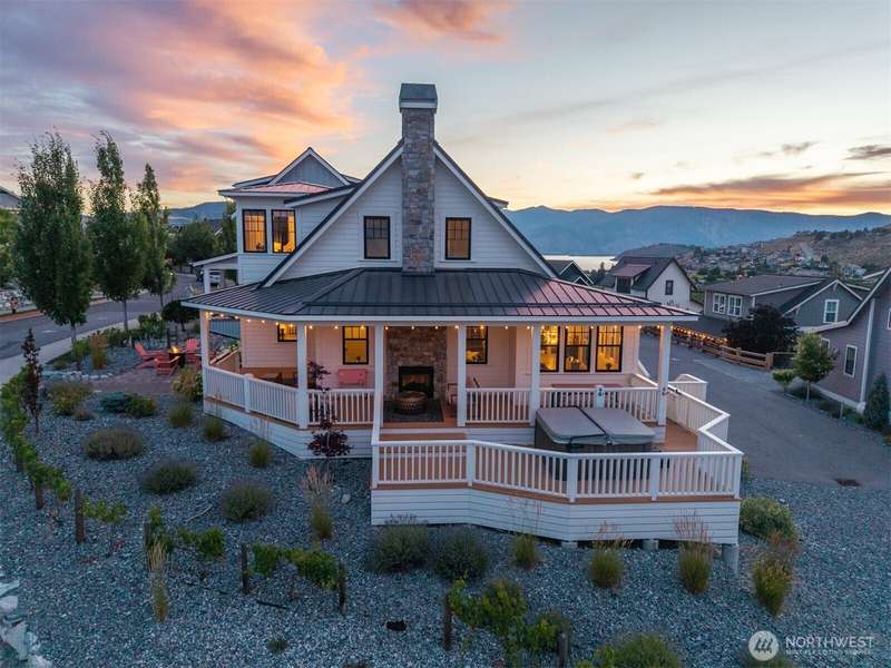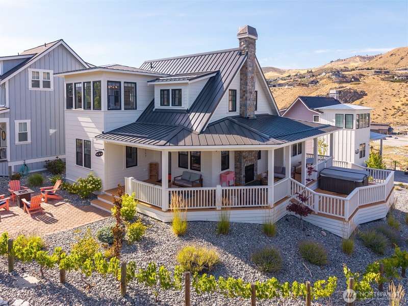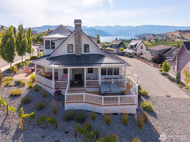 Terrific turn-key fully furnished modern farmhouse at The Lookout on a corner lot w/ stunning uplake views. This spacious 3bd, 1.75bth, 1,453sf home features an open floor plan & incredible outdoor living areas via the classic wraparound covered porch, outdoor BBQ & lounge area w/ café lights, fire pit w/ Adirondack chairs plus private hot tub, all just steps from the year-round Vineyard District Pool. Main level w/ Primary Bedroom, spacious kitchen, a 10-person dining area & light-filled living room w/ 2-sided fireplace. Upper level w/ king bedroom, bathroom & a bunk room that sleeps 5. The Lookout offers community waterfront, marina, parks, pools, sports courts & more! Exceptional, consistent VACATION HOME RENTAL w/ on-site management.