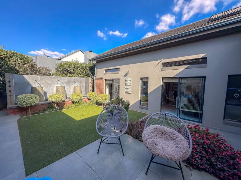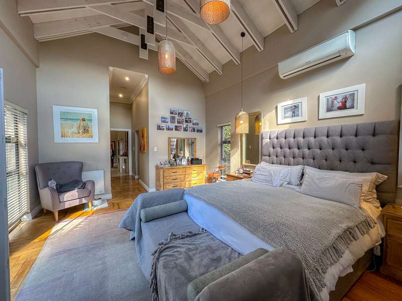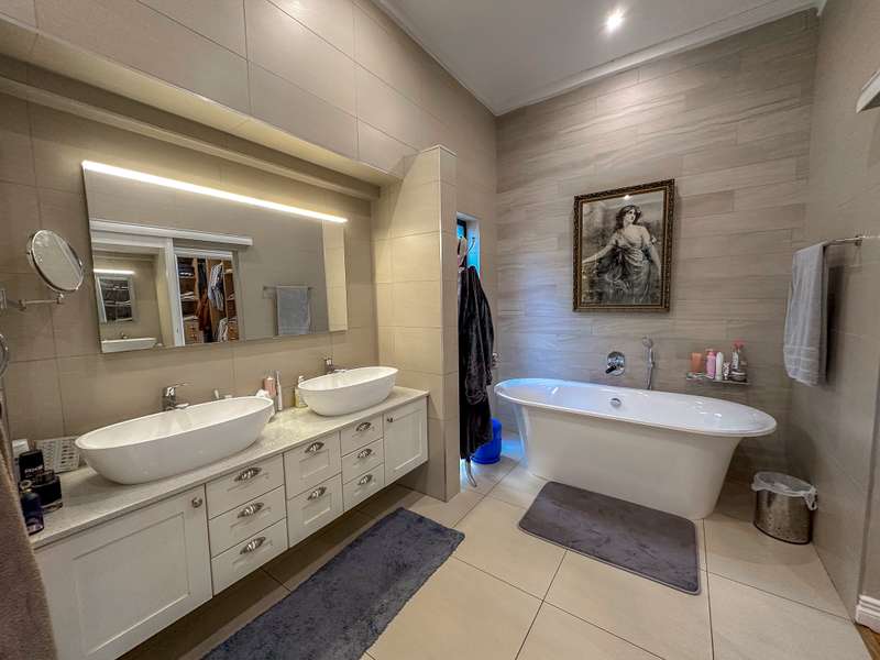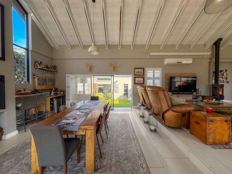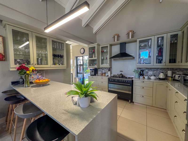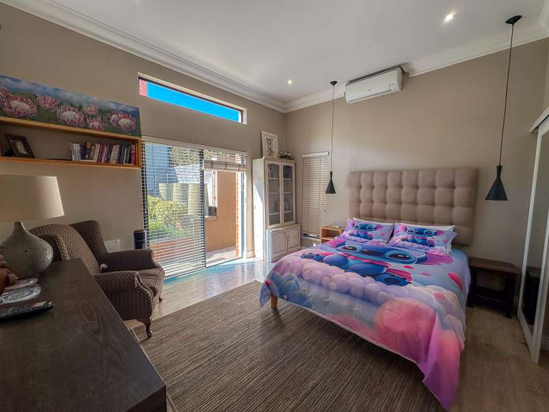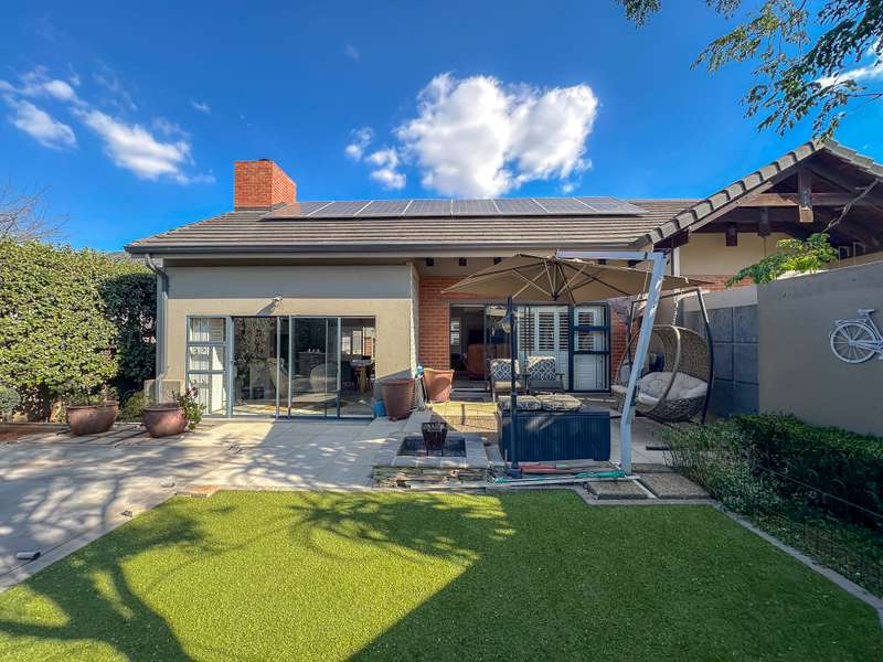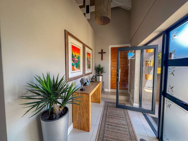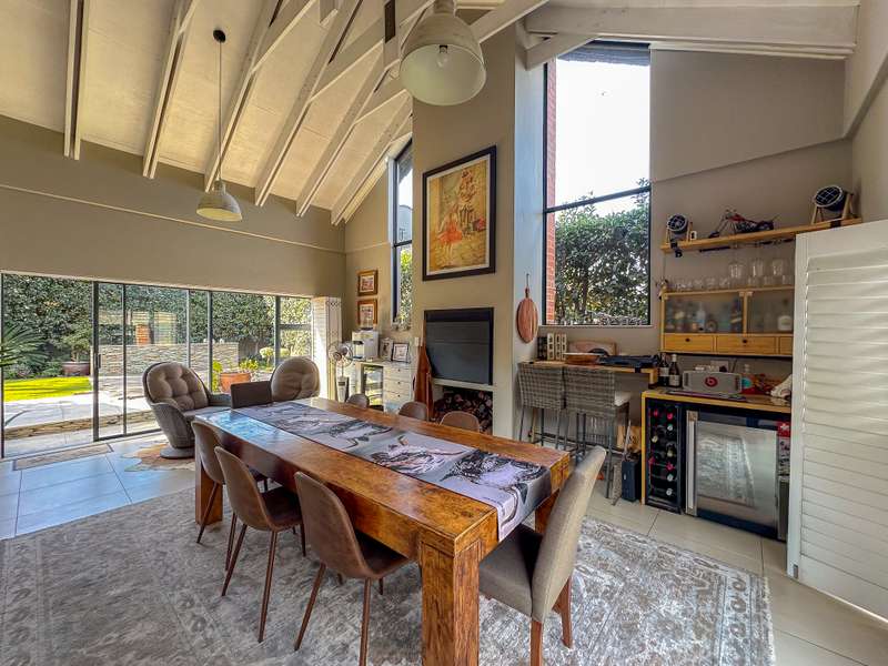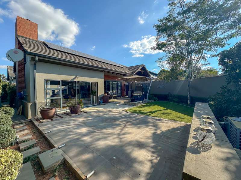 ON SHOW: Viewings based on appointments Tucked away in a tranquil cul-de-sac, this stunning single-level residence offers a blend of elegance, warmth, and modern efficiency. From the moment you arrive, the home welcomes you with its beautifully landscaped frontage, double garages, ample guest parking, and a convenient side gate perfect for trailers. Step inside to a charming foyer that seamlessly flows into expansive open-plan living spaces. High-volume ceilings and exposed roof trusses create an airy, sophisticated atmosphere, complemented by abundant natural light. The lounge features a cozy gas fireplace, while the dining area is perfectly positioned in the enclosed patio with a built-in braai and extra cabinetry — an entertainer’s dream. The gourmet kitchen is thoughtfully designed with a private scullery, a generous pantry, space for three appliances, and a heat pump for water efficiency. All windows are adorned with sleek American blinds for a clean, contemporary finish. Glass doors open the patio to two inviting garden retreats. To the left, a sparkling swimming pool and secluded patio seating area await your relaxation. To the right, a tranquil water fountain creates a serene backdrop for another outdoor living space. A hallway lined with impressive cupboard space leads to the private bedroom wing. The luxurious main suite includes a walk-in closet, air-conditioning, a fireplace, and its own private outdoor seating area — the perfect place to begin or end your day. The spacious en-suite bathroom completes this peaceful sanctuary. Three additional family bedrooms, each with en-suite bathrooms and direct garden access, ensure comfort and privacy for all. A dedicated study provides a quiet space for working from home. Additional Features: - 22 solar panels paired with a 25KW inverter and battery system - Two geysers, including a solar-powered unit - Outside toilet - Automated irrigation system - Swimming pool - Air-conditioning in bedrooms, main lounge and study **Rates and Levies - Estimated** This remarkable home effortlessly combines style, functionality, and sustainability. Come experience a lifestyle defined by comfort and sophistication in the heart of Midstream Ridge Estate.