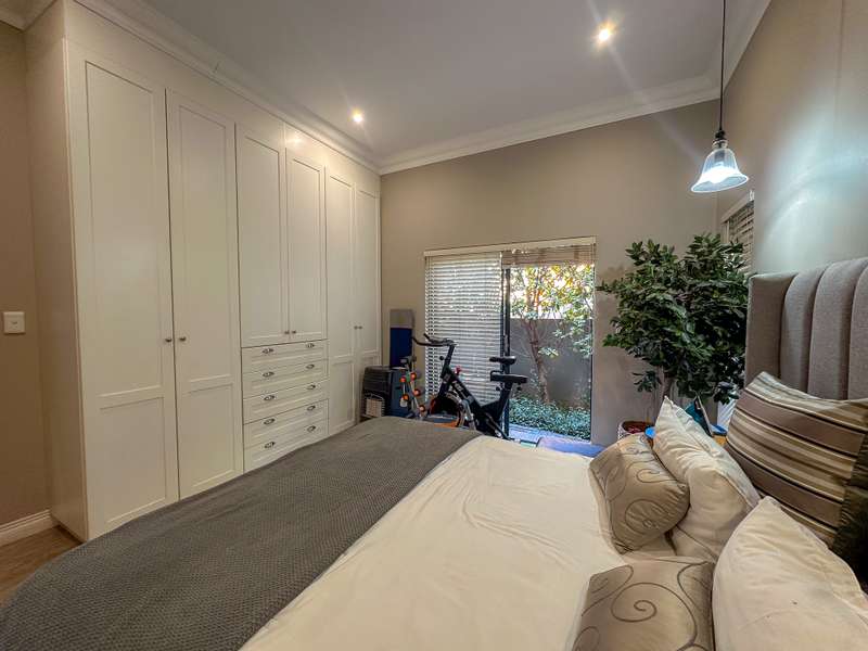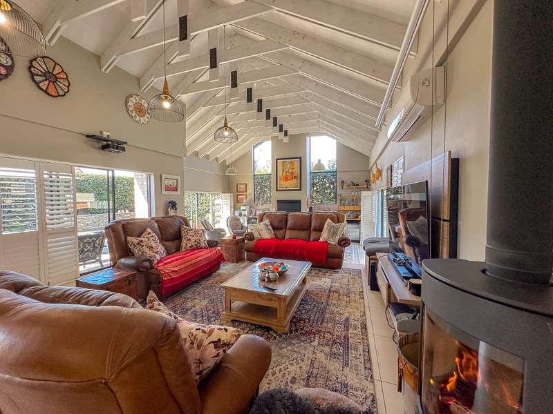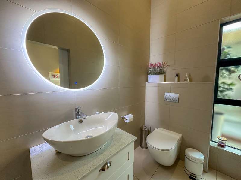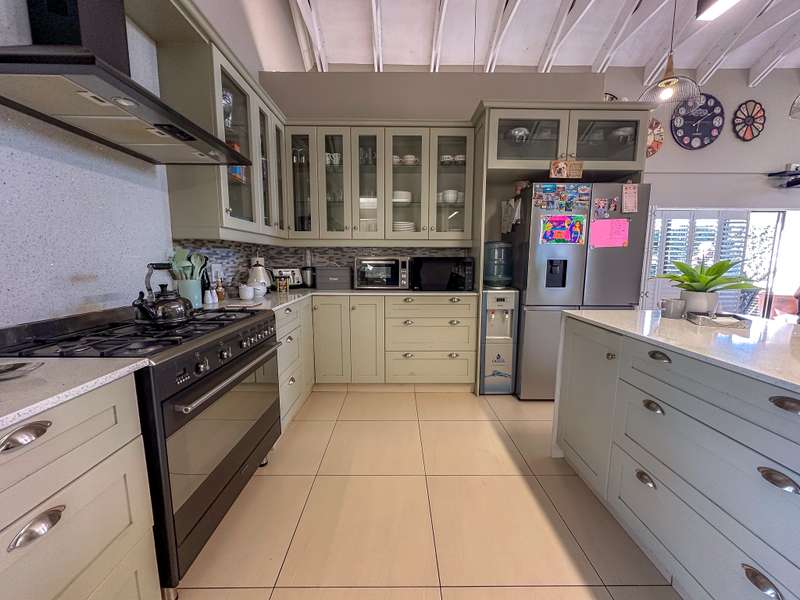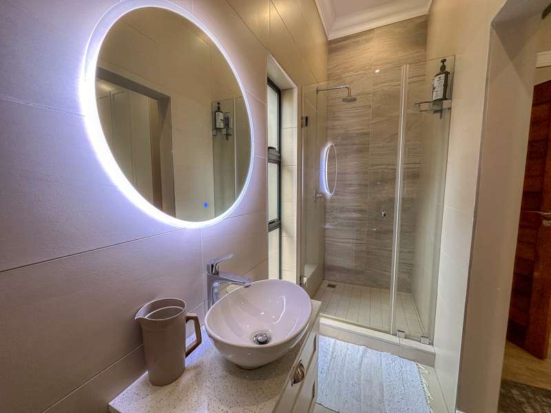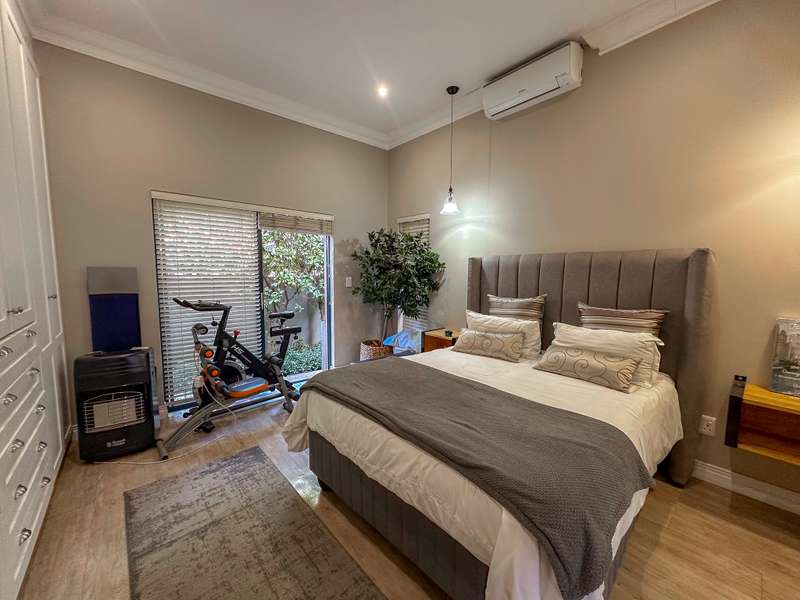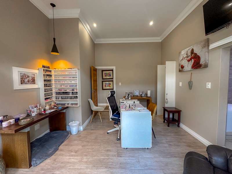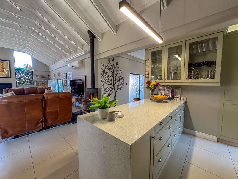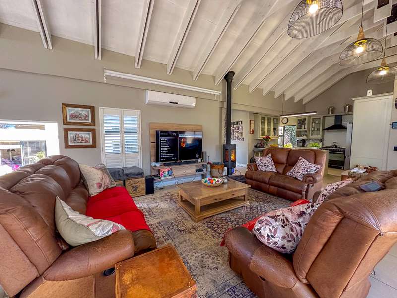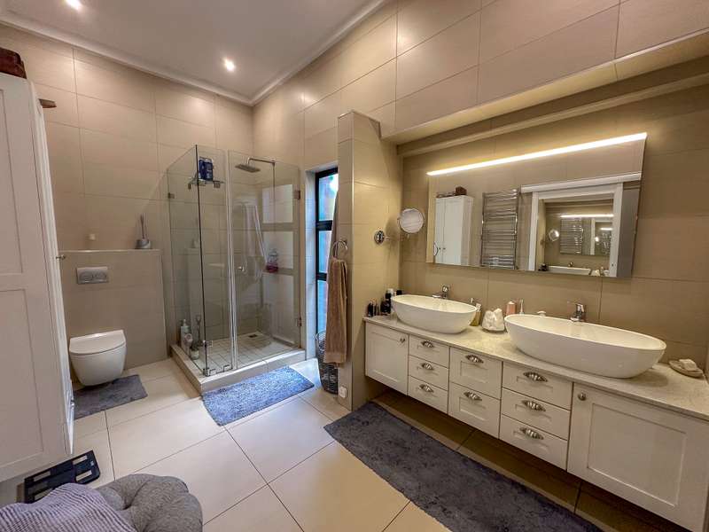 ON SHOW: Viewings based on appointments Tucked away in a tranquil cul-de-sac, this stunning single-level residence offers a blend of elegance, warmth, and modern efficiency. From the moment you arrive, the home welcomes you with its beautifully landscaped frontage, double garages, ample guest parking, and a convenient side gate perfect for trailers. Step inside to a charming foyer that seamlessly flows into expansive open-plan living spaces. High-volume ceilings and exposed roof trusses create an airy, sophisticated atmosphere, complemented by abundant natural light. The lounge features a cozy gas fireplace, while the dining area is perfectly positioned in the enclosed patio with a built-in braai and extra cabinetry — an entertainer’s dream. The gourmet kitchen is thoughtfully designed with a private scullery, a generous pantry, space for three appliances, and a heat pump for water efficiency. All windows are adorned with sleek American blinds for a clean, contemporary finish. Glass doors open the patio to two inviting garden retreats. To the left, a sparkling swimming pool and secluded patio seating area await your relaxation. To the right, a tranquil water fountain creates a serene backdrop for another outdoor living space. A hallway lined with impressive cupboard space leads to the private bedroom wing. The luxurious main suite includes a walk-in closet, air-conditioning, a fireplace, and its own private outdoor seating area — the perfect place to begin or end your day. The spacious en-suite bathroom completes this peaceful sanctuary. Three additional family bedrooms, each with en-suite bathrooms and direct garden access, ensure comfort and privacy for all. A dedicated study provides a quiet space for working from home. Additional Features: - 22 solar panels paired with a 25KW inverter and battery system - Two geysers, including a solar-powered unit - Outside toilet - Automated irrigation system - Swimming pool - Air-conditioning in bedrooms, main lounge and study **Rates and Levies - Estimated** This remarkable home effortlessly combines style, functionality, and sustainability. Come experience a lifestyle defined by comfort and sophistication in the heart of Midstream Ridge Estate.