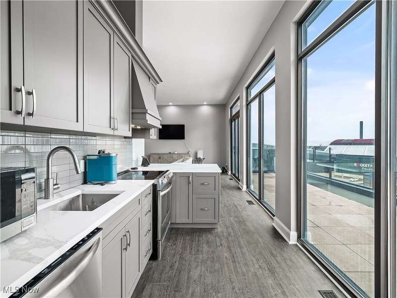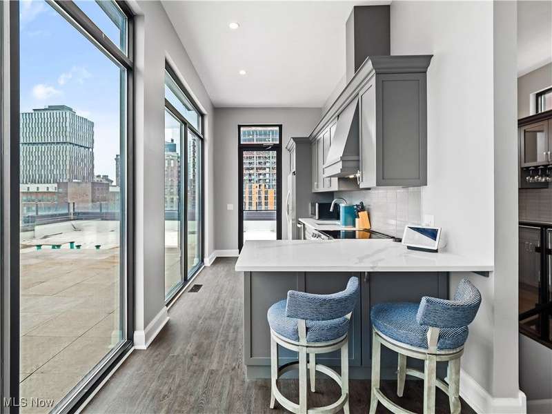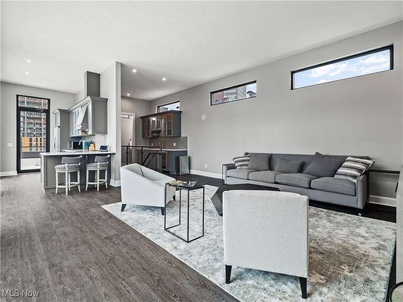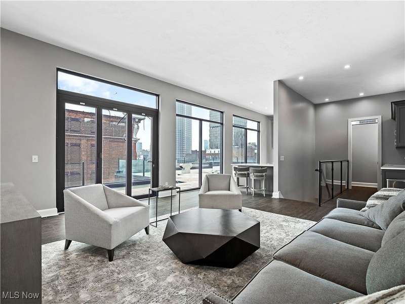 Luxury Pointe at Gateway rental with spacious private patio. Lovely features include newer flooring, modern lighting, stylish glass staircase railing, neutral paint throughout. In-unit laundry, two bedrooms, and two renovated full baths - with walk-in showers - occupy the first level. The second floor offers an airy & voluminous living room, wall of windows providing natural light, completely renovated kitchen (gorgeous countertops, stainless appliances, attractive backsplash, new cabinets), wet bar with beverage fridge, and powder room. Step out onto your magnificent private patio overlooking The Gateway District. You're in the best location, just steps to East Fourth Street, sporting venues, grocery stores, breweries, Theatre District, and the finest dining. This is THE ultimate dream home in the City. Elevate your lifestyle here.