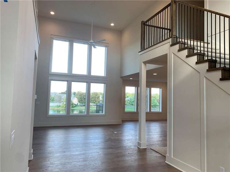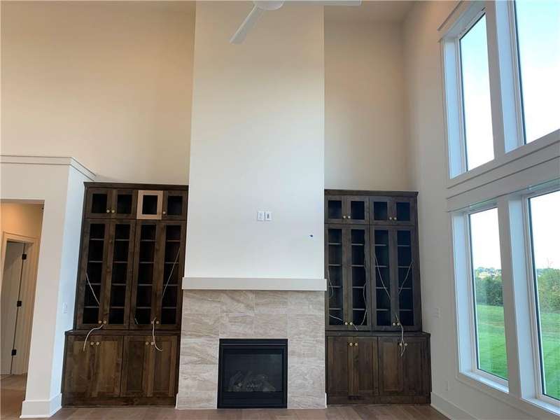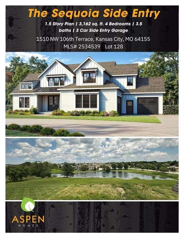 Sophisticated Sequoia 1.5 Story Plan by Aspen Homebuilders | Energy-Efficient Luxury Home on an Estate-Sized Walkout Lot Nestled on a generous lot backing to tranquil greenspace and a serene pond. The striking curb appeal features a 3-car side-entry garage with a circle drive & modern farmhouse aesthetic. The open-concept main level is anchored by engineered wide-plank hardwood flooring, a custom accent wall and a captivating great room featuring sky high windows. The adjoining Hearth Room, Dining Area, and Chefs Kitchen are a true entertainers dreamshowcasing custom cabinetry, an expansive island, under-cabinet lighting, a premium JennAir appliances including refrigerator, gas cooktop, wall oven & microwave. A spacious walk-in pantry, mudroom, guest powder bath provide everyday convenience.Retreat to the luxurious main-level Primary Suite, complete with a spa-inspired en-suite bath featuring dual vanities, a zero-entry shower, and a walk-in closet with direct access to the laundry room for maximum functionality.Upstairs, a loft overlooks the great room below, accompanied by three generously sized bedroomstwo sharing a stylish Jack & Jill bath, and one with a private en-suiteeach with walk-in closets.Enjoy seamless indoor-outdoor living with a covered composite deck and stairs leading to a custom patio surrounded by lush greenspace and water views.Engineered for high-performance comfort and sustainability, this home boasts a Certified HERS Energy Rating of 49, 100% sealed energy envelope, Energy Star-rated windows and appliances, blown-in insulation, tankless water heater, and an advanced HVAC system with ERV ventilation, Aeroseal duct sealing, and a 96% efficient furnace. Home is currently at sheetrock. Photos coming soon. Estimated completion: October 2025. Situated in a premier Hunt Midwest community with exceptional amenities including a swimming pool, playground & walking trails. NKCSD & highly sought-after Staley High School. Photos as of 10-15-25