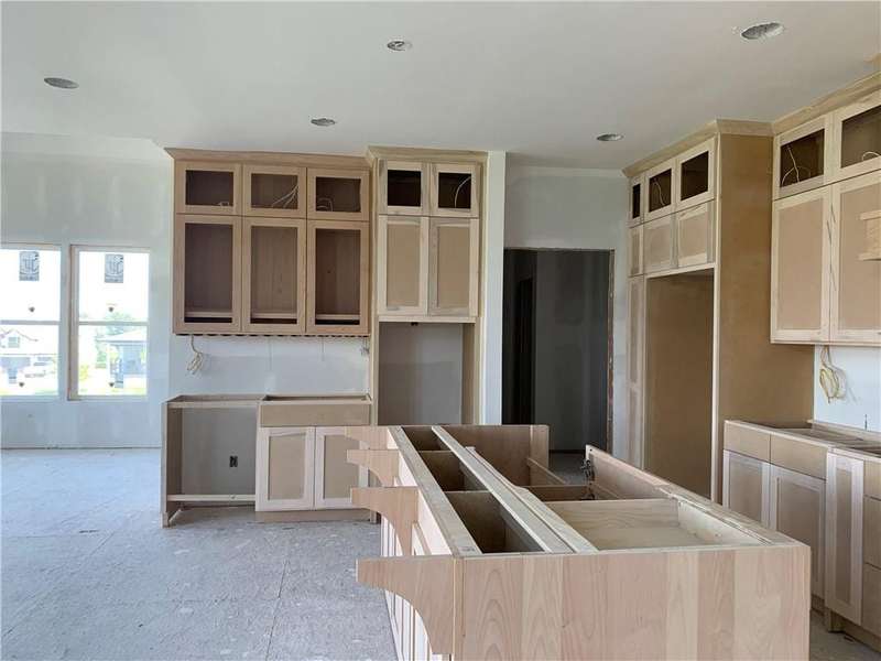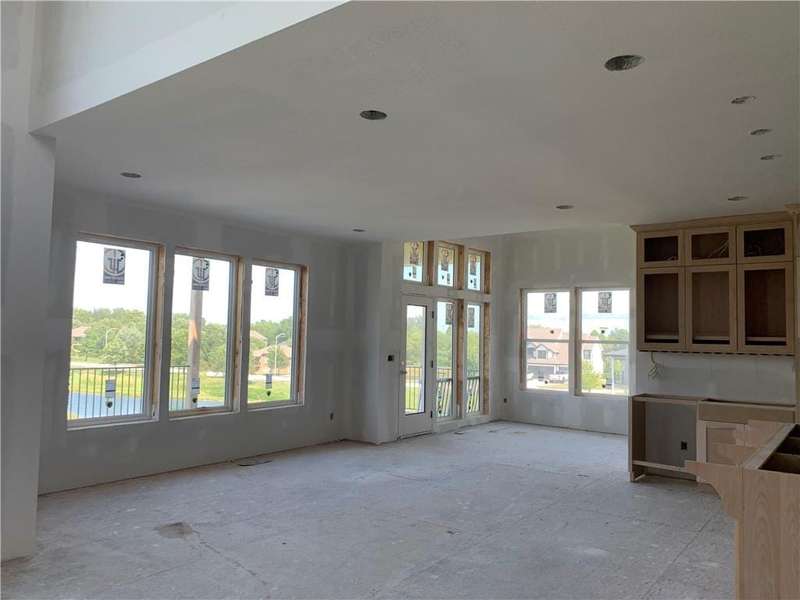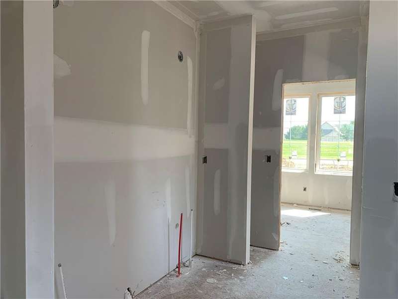 Sophisticated Sequoia 1.5 Story Plan by Aspen Homebuilders | Energy-Efficient Luxury Home on an Estate-Sized Walkout Lot Nestled on a generous lot backing to tranquil greenspace and a serene pond. The striking curb appeal features a 3-car side-entry garage with a circle drive & modern farmhouse aesthetic. The open-concept main level is anchored by engineered wide-plank hardwood flooring, a custom accent wall and a captivating great room featuring sky high windows. The adjoining Hearth Room, Dining Area, and Chefs Kitchen are a true entertainers dreamshowcasing custom cabinetry, an expansive island, under-cabinet lighting, a premium JennAir appliances including refrigerator, gas cooktop, wall oven & microwave. A spacious walk-in pantry, mudroom, guest powder bath provide everyday convenience.Retreat to the luxurious main-level Primary Suite, complete with a spa-inspired en-suite bath featuring dual vanities, a zero-entry shower, and a walk-in closet with direct access to the laundry room for maximum functionality.Upstairs, a loft overlooks the great room below, accompanied by three generously sized bedroomstwo sharing a stylish Jack & Jill bath, and one with a private en-suiteeach with walk-in closets.Enjoy seamless indoor-outdoor living with a covered composite deck and stairs leading to a custom patio surrounded by lush greenspace and water views.Engineered for high-performance comfort and sustainability, this home boasts a Certified HERS Energy Rating of 49, 100% sealed energy envelope, Energy Star-rated windows and appliances, blown-in insulation, tankless water heater, and an advanced HVAC system with ERV ventilation, Aeroseal duct sealing, and a 96% efficient furnace. Home is currently at sheetrock. Photos coming soon. Estimated completion: October 2025. Situated in a premier Hunt Midwest community with exceptional amenities including a swimming pool, playground & walking trails. NKCSD & highly sought-after Staley High School. Photos as of 8-16-2025