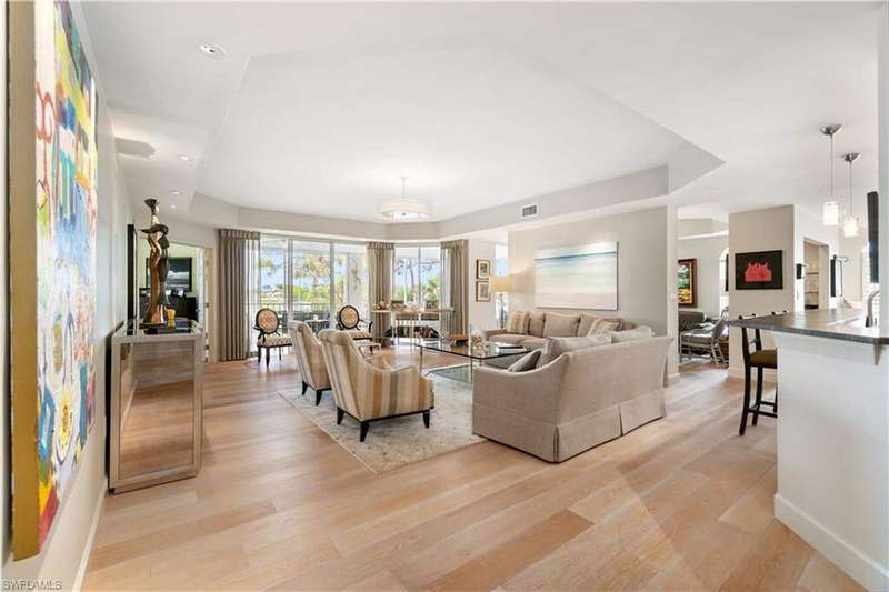 Beautifully updated condo with spectacular golf course & lake views in North Naples' coveted "Audubon Golf & Country Club!" All the prime amenities offered in Audubon are only steps away, including an 18-hole championship golf course, tennis, pickleball, Bayside boardwalk, brand-new spectacular poolside club & cafe. Relax and unwind on your expansive screened-in lanai with breathtaking panoramic golf course views. This stunning residence features an open floor plan, three spacious bedrooms, a versatile den, and 3.5 bathrooms. A private two-car garage, complete with golf cart storage, adds to the convenience. Inside, you'll find light, wide plank, wood flooring, tray ceilings, and a chef's kitchen with crisp white cabinetry, exquisite granite countertops, and a breakfast bar for casual dining. Adjacent to the kitchen, a charming eat-in area offers a beverage bar with a built-in wine cooler, perfect for entertaining. The expansive primary suite boasts stunning golf course views, private access to the lanai, and a spa-like en-suite bathroom with dual vanities, a large frameless glass shower, and a separate soaking tub. Audubon Golf & Country Club is ideally located just five minutes from the vibrant Mercato shopping center and the pristine beaches of Southwest Florida, all within a gated, and guarded community.