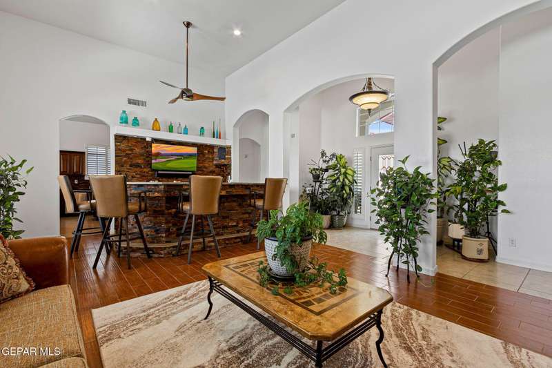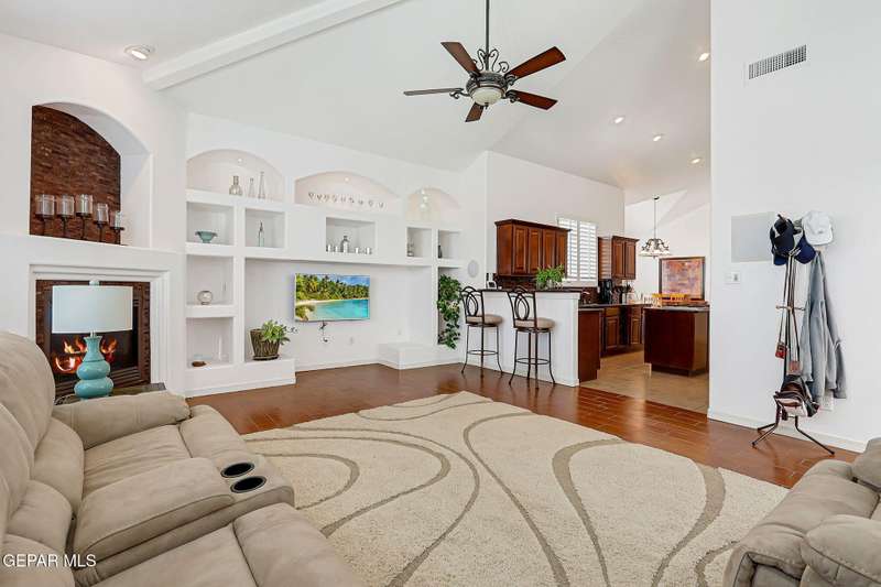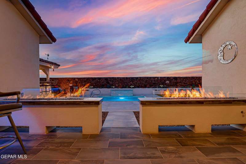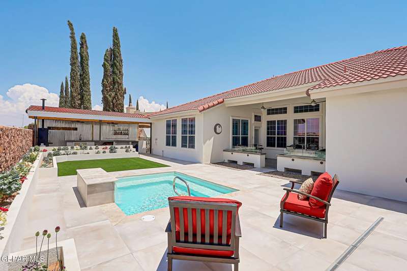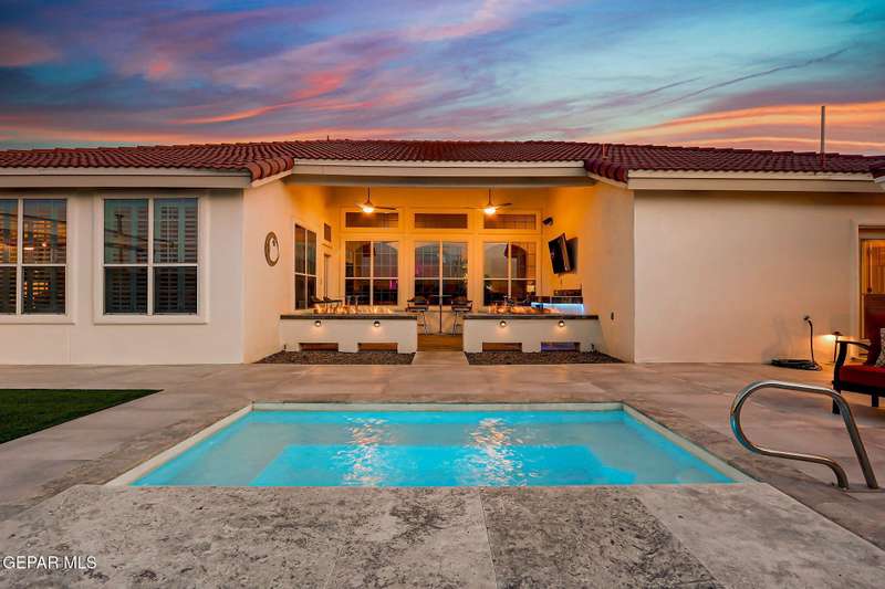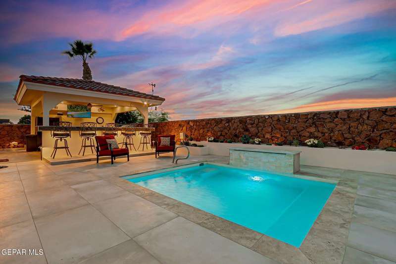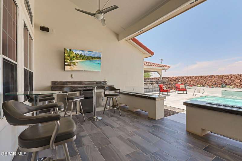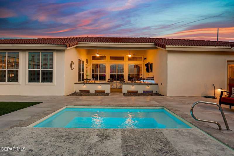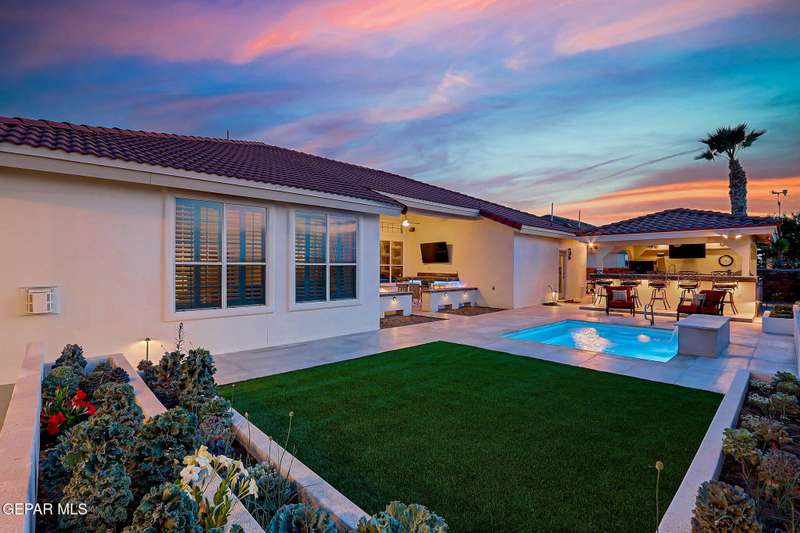 GORGEOUS-EXQUISITE-COMPLETE This home checks all the boxes. Lets start with the interior. 4 good size bedrooms. The primary bedroom is very spacious with a spa like bathroom, which includes a coffee station. Two bedrooms share a jack and jill bathroom. And the 4th bedroom works as an office or a workout space. Two separate living areas and a built in bar. Moving to the Awesome backyard space, it features an amazing covered outdoor kitchen with a full size refrigerator, sink, BBQ grill and flat iron grill. For entertaining it includes a TV and Bluetooth speakers. The patio has two luxurious fire pits , TV and a dry bar countertop. On the other side of the yard there is a covered smoke pit area. Complete with a built in top of the line Smoker. And the main attraction would be the in ground hot tub with a waterfall feature. It needs to be seen in person to appreciate.