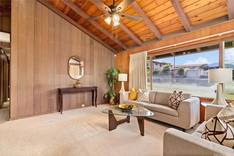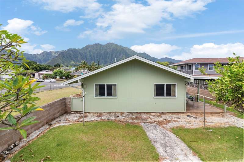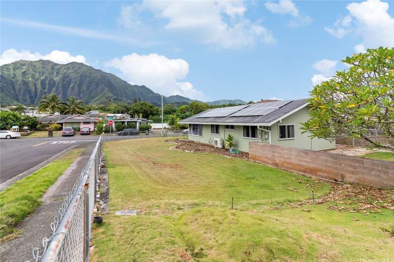 Experience the peaceful and timeless lifestyle of Hawaii in this 3-bed 2-bath single level home on a large corner lot! Located in the desirable Crown Terrace neighborhood of Kaneohe, this is a quiet street with no through traffic. Functional floor plan with large picturesque windows in the living area allow for lots of natural light from the sunshine and beautiful views of the Koolau Mountain range. This well cared for home features an updated kitchen and bathrooms, split AC and 20 owned Photovoltaic panels with NEM to save costs on electricity. The big yard gives you lots of options to expand, garden, or use with your family and pets!!! This home is ready for a new owner that will love and care for it the way the first owner has!