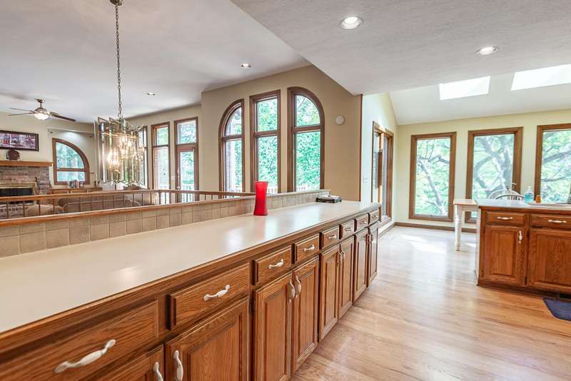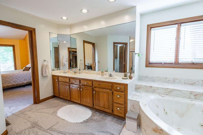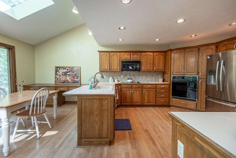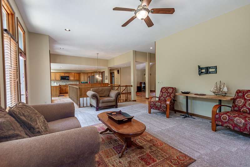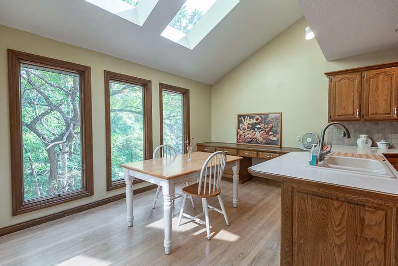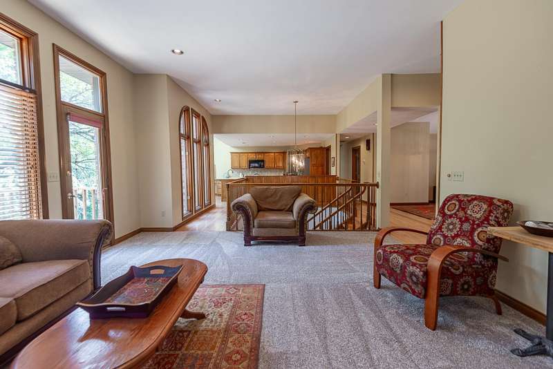 SPRING CREEK! Welcome to 4922 S Bellhurst where nature abounds! This 4 bedroom, 4 bath walkout basement home backs to the nature center where wildlife is literally outside your back door. Enjoy early mornings or late evenings on one of four decks (one is covered). The inside has so much to offer. The contemporary floor plan boasts an open area between the great room and expansive kitchen with both casual and formal dining. The hardwood walkways tie it all together. With new carpet on the main level it is feels light and fresh! The primary bedroom features its own private loft, a private deck, a large walk-in closet and ensuite bathroom with jetted tub, separate shower, linen storage and dual sinks. The second bedroom is on the opposite side of the house and shares access to another full bathroom. Take the lovely open tread hardwood stairs to the basement family room. Enjoy the warmth of the pellet stove insert fireplace adorned with built-in bookcases and doors to the covered deck. There are two more large bedrooms down here with two more full baths, an office and a very secluded bonus family room with access to the 4th deck. Need storage....all the bedrooms and the office have walk-in closets plus a bonus walk-in closet off the family room. The garage has 3 car parking with two storage closets and an oversized area for your fun gear. This is a rare opportunity on a special home so don't miss out. The home is being sold As Is and priced accordingly.