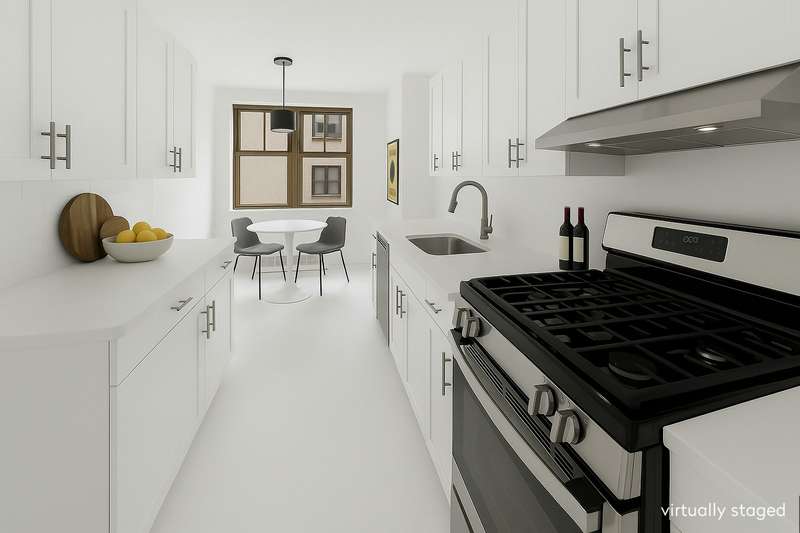 - Amply sized, windowed eat-in kitchen which can be opened to the living room or configured into a windowed, third bedroom/den/office