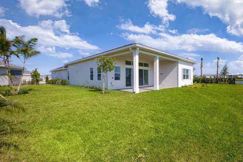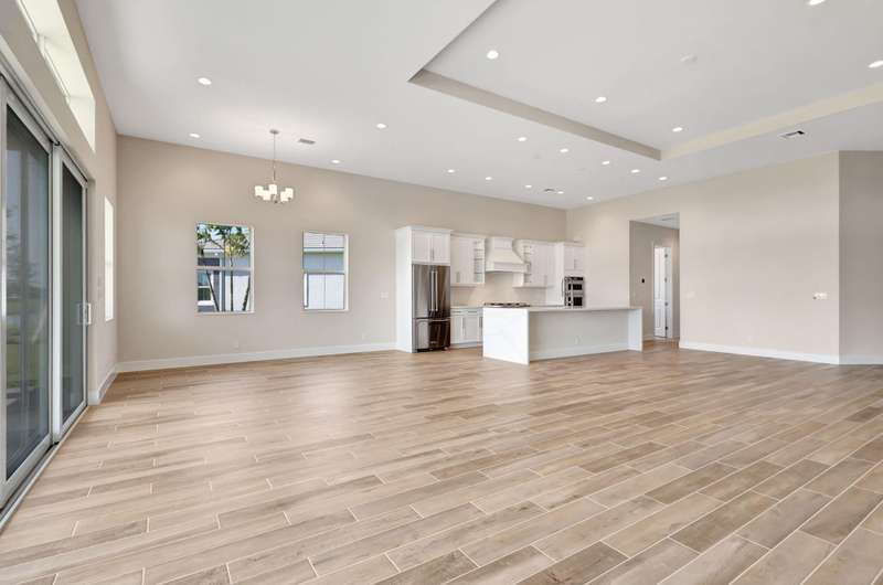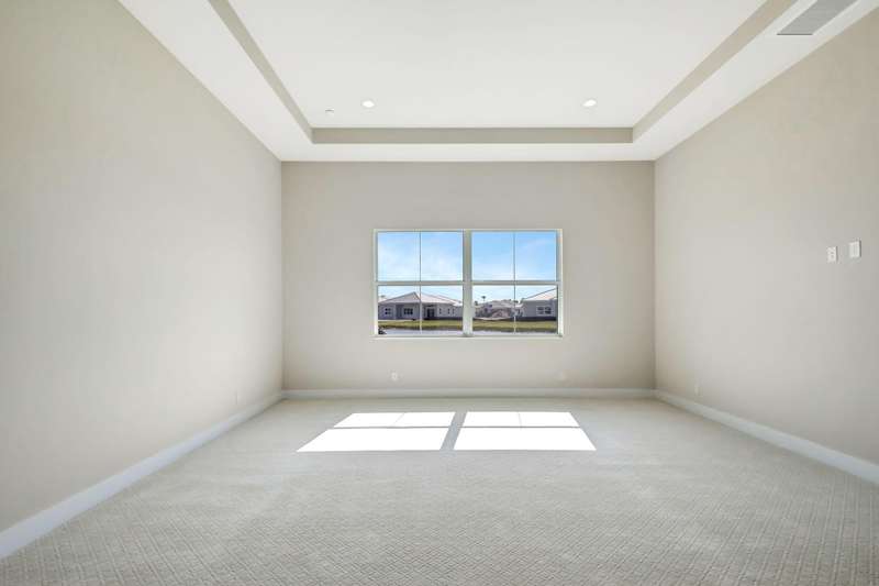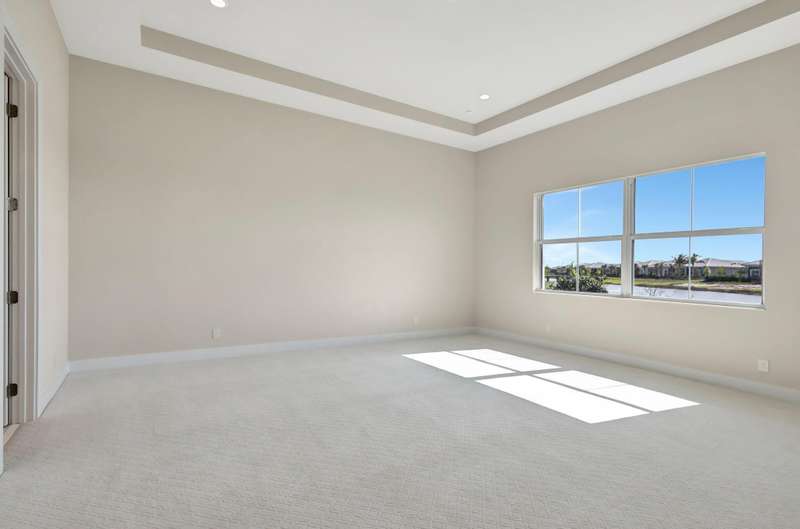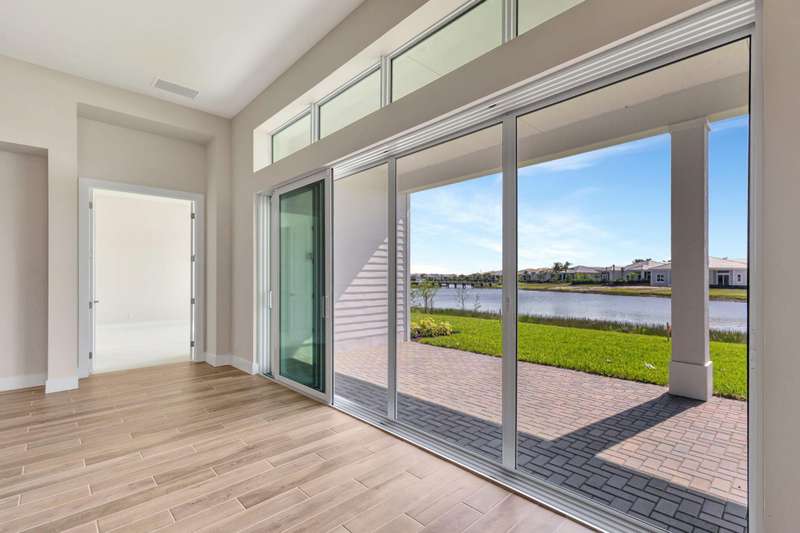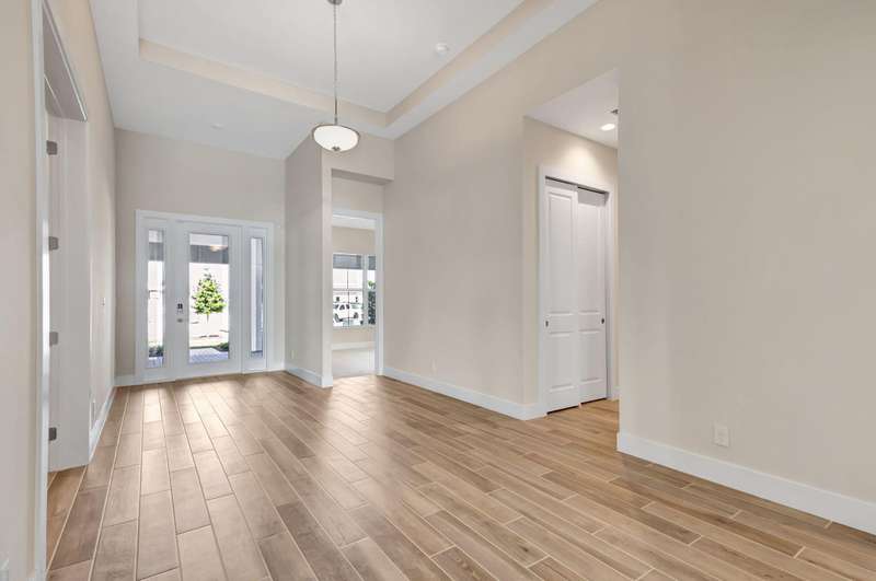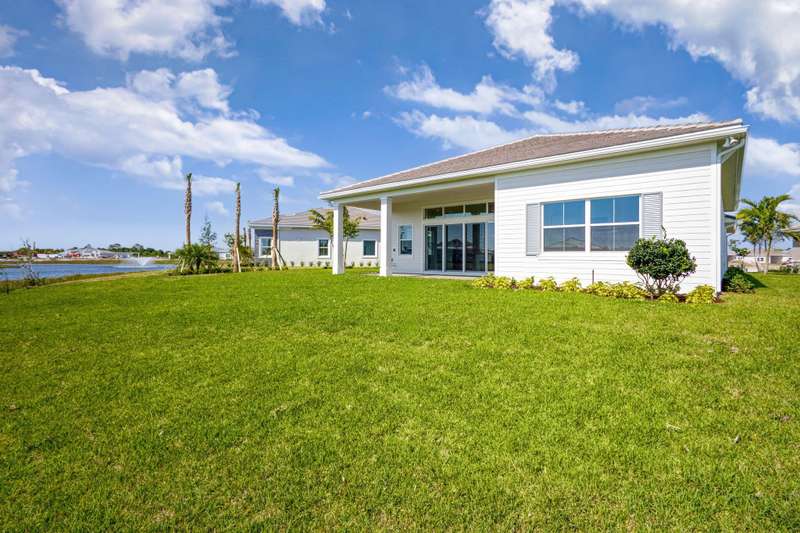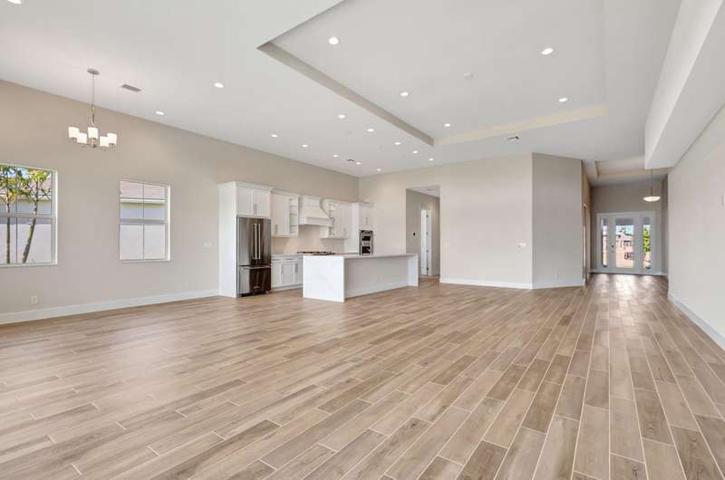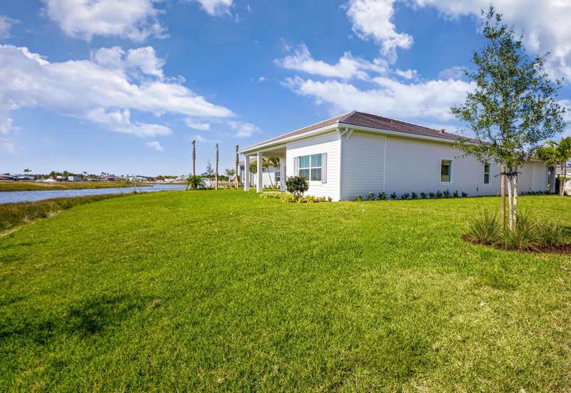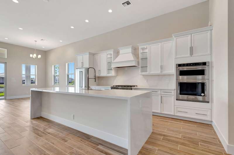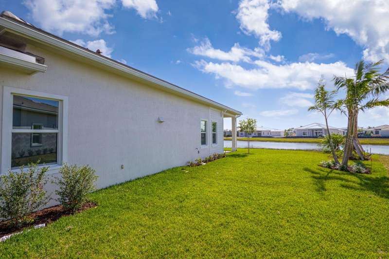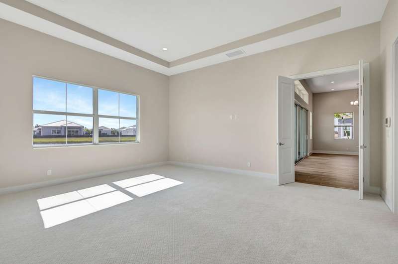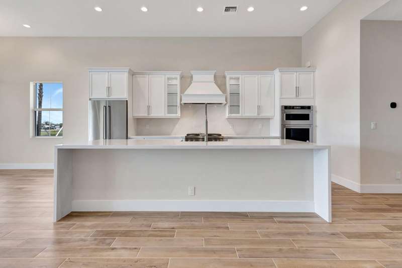 Coastal Elegance with Expansive Water Views and Stunning Sunsets. Nestled on an oversized lot, this beautifully designed coastal-style home offers breathtaking water views and unforgettable sunsets. A charming covered porch and welcoming entryway open into a grand foyer, setting the tone for the spacious and light-filled interior. The open-concept great room impresses with a coffered ceiling and seamlessly flows into the bright dining area and expansive covered lanai--ideal for indoor-outdoor living. Thoughtfully upgraded throughout, the gourmet kitchen boasts a large center island with breakfast bar, abundant cabinetry and counter space, and a generous walk-in pantry--perfect for everyday living and entertaining. The luxurious primary suite features a tray ceiling, dual walk-in closets, a