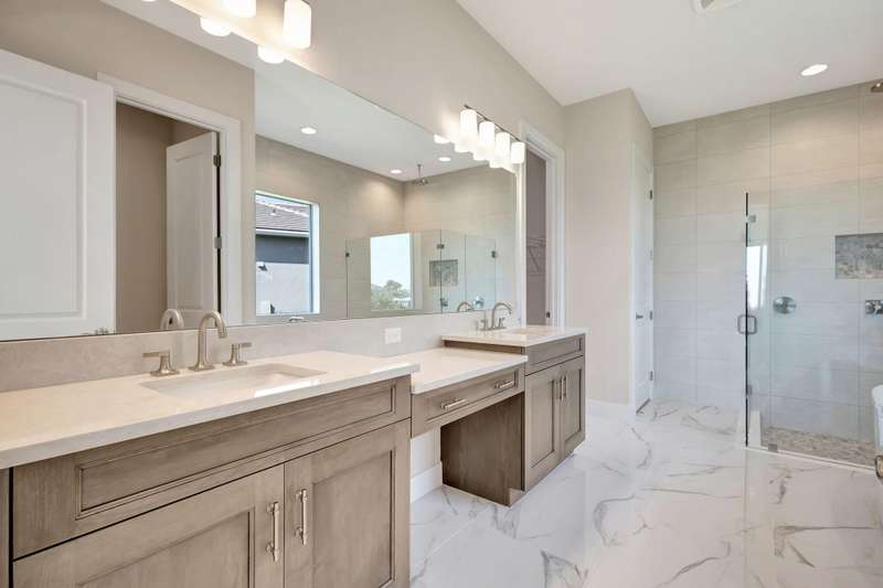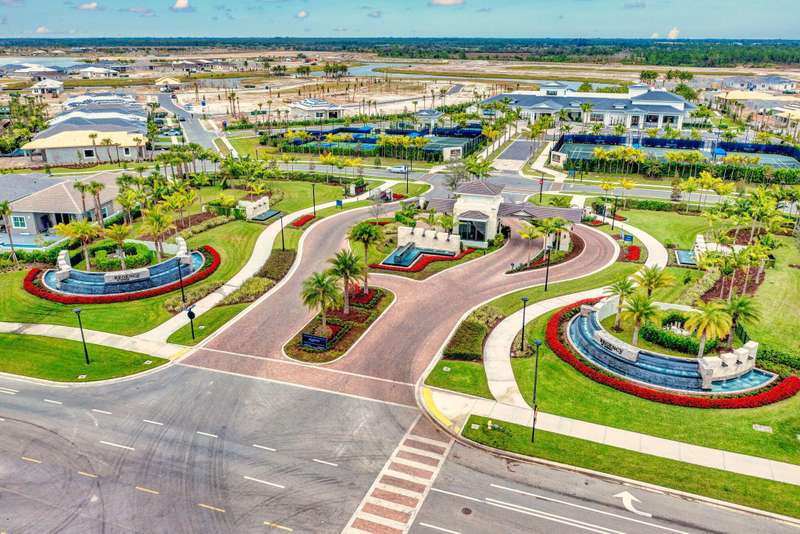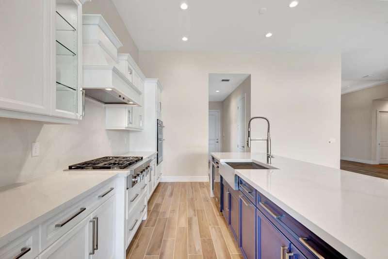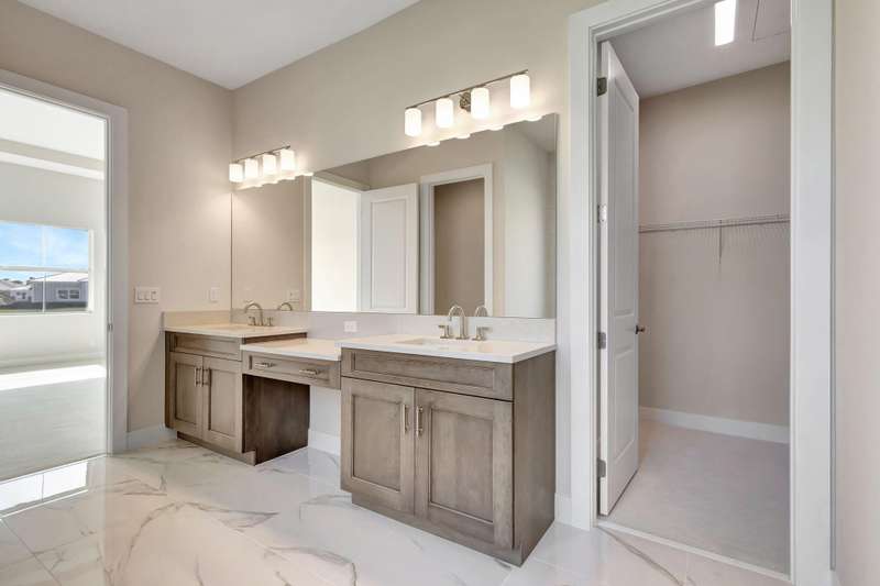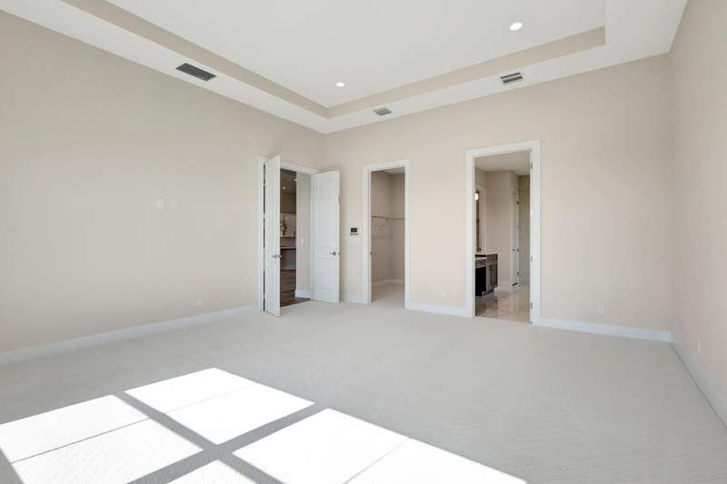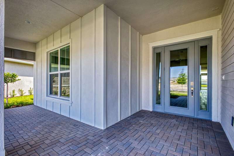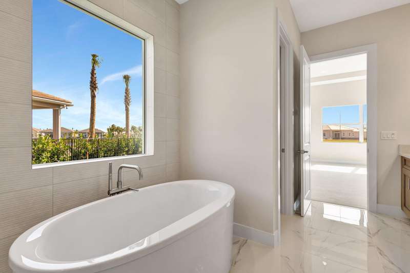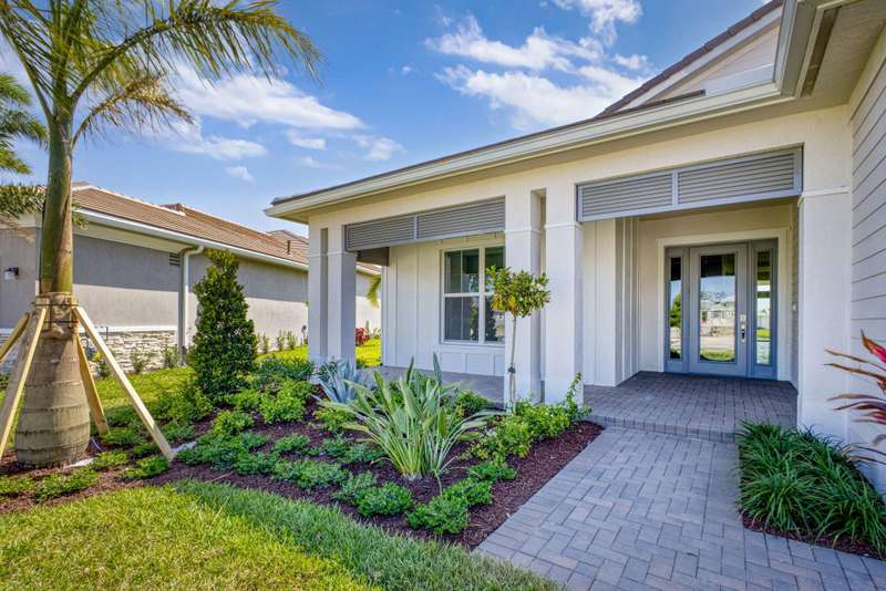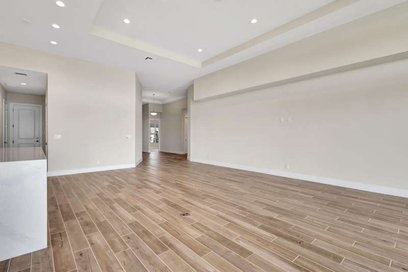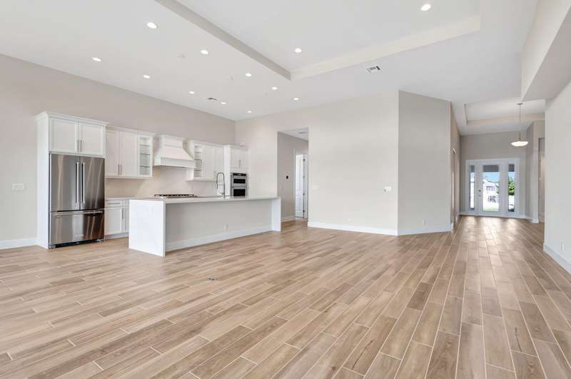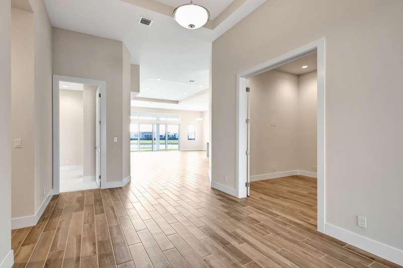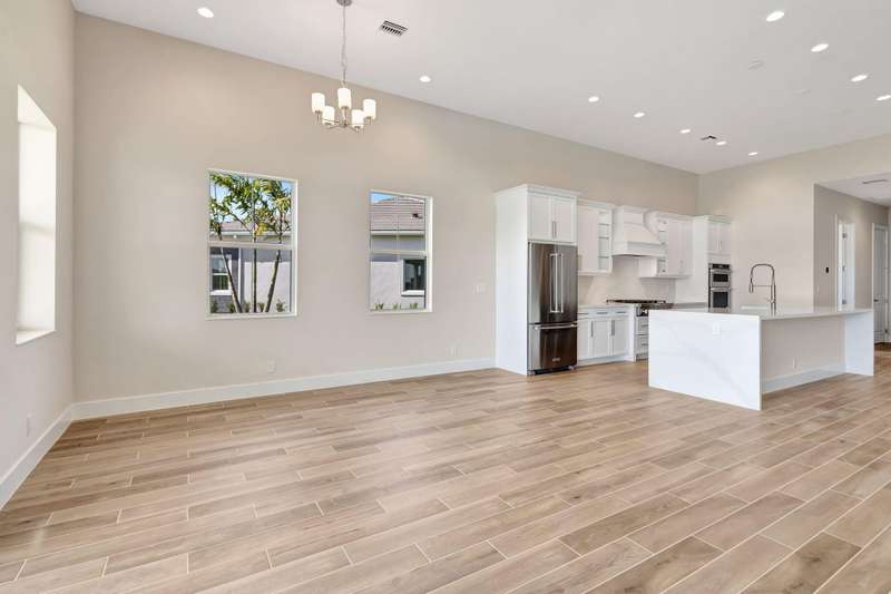 Coastal Elegance with Expansive Water Views and Stunning Sunsets. Nestled on an oversized lot, this beautifully designed coastal-style home offers breathtaking water views and unforgettable sunsets. A charming covered porch and welcoming entryway open into a grand foyer, setting the tone for the spacious and light-filled interior. The open-concept great room impresses with a coffered ceiling and seamlessly flows into the bright dining area and expansive covered lanai--ideal for indoor-outdoor living. Thoughtfully upgraded throughout, the gourmet kitchen boasts a large center island with breakfast bar, abundant cabinetry and counter space, and a generous walk-in pantry--perfect for everyday living and entertaining. The luxurious primary suite features a tray ceiling, dual walk-in closets, a