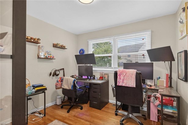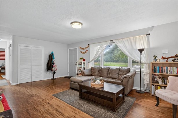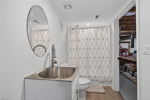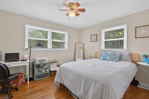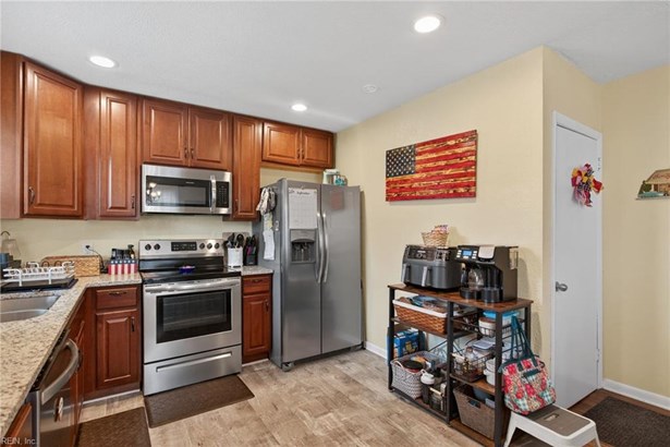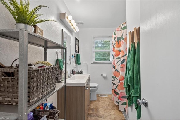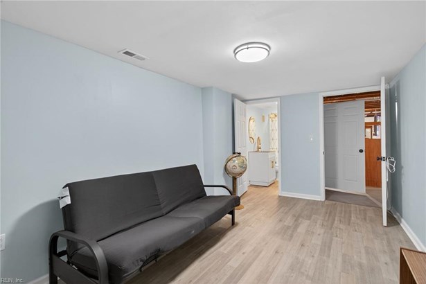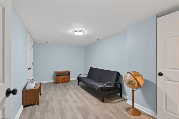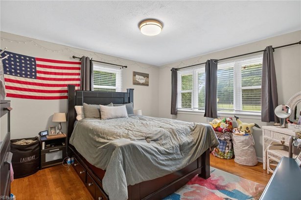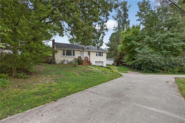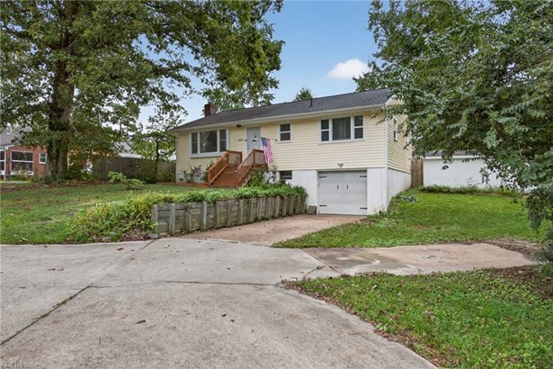 This charming 4-bedroom, 2-bath ranch home features a well-maintained exterior with a spacious yard and a fully fenced backyard, ideal for privacy, outdoor activities, and your four legged family members. The first floor offers 3 bedrooms, 1 bath, kitchen updated in 2020 with stainless steel appliances, cabinets, and granite counters. Hardwood floors throughout, providing a warm and modern living space. The lower level includes a garage with freshly painted floors, 1 bedroom with new luxury vinyl plank (LVP) flooring, a full bath with a new vanity, and a convenient bar area. Additional highlights include a large storage shed and ample driveway parking. Conveniently located close to Naval Weapons Station, Ft. Eustis, and I-64