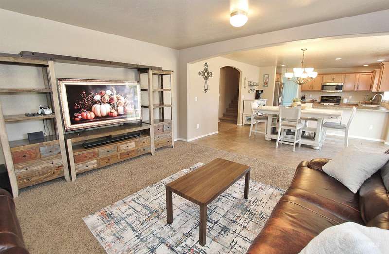Seller offering $5,000 concession to go towards flooring, closing cost or rate buy down! Just Imagine… you’ve finally found the space where family, friends, and possibilities all come together. With 6 bedrooms and 3 baths, there’s room for loved ones, guests, or even a home office. The open kitchen with breakfast bar connects beautifully to two living areas—perfect for daily life, movie nights, or gatherings with friends. New exterior paint enhances the welcoming curb appeal, while inside, comfort and function blend seamlessly. Step outside to a quarter-acre fenced yard, offering plenty of room for play, gardening, BBQs, and even possible RV parking. The 3-car garage provides all the storage you need for cars, tools, and toys. A cozy front patio makes evenings relaxing, and the location puts you near everything—community parks, an elementary school, shopping, dining, health facilities, entertainment, the Ford Idaho Center, and schools all the way through the university level. This is a home that offers comfort, connection, convenience, and room for every stage of life.