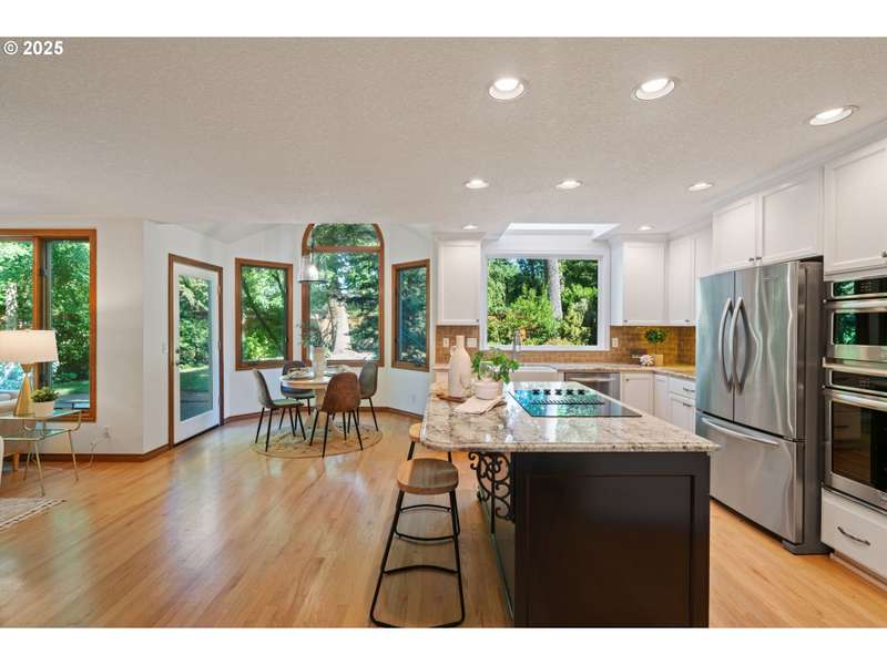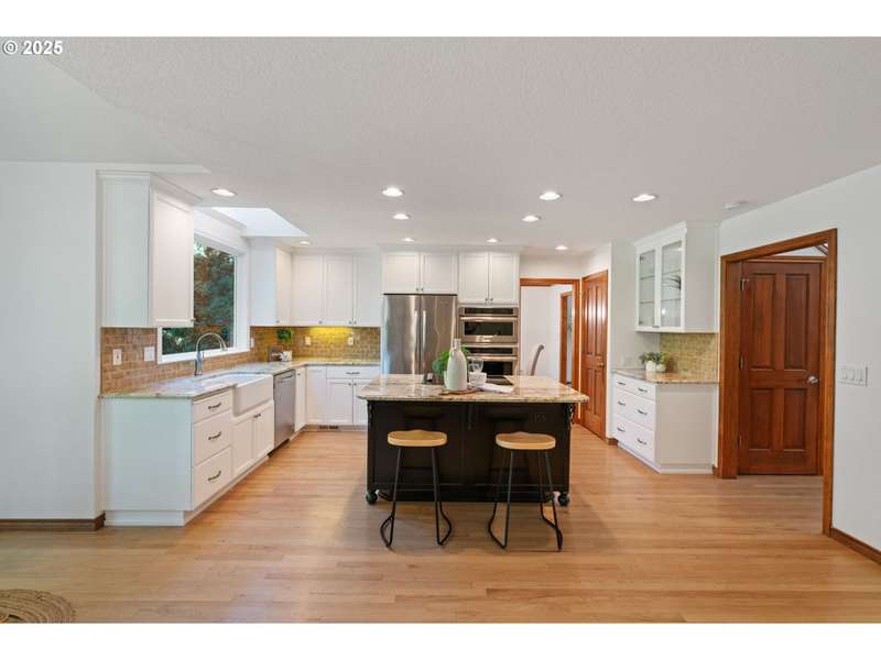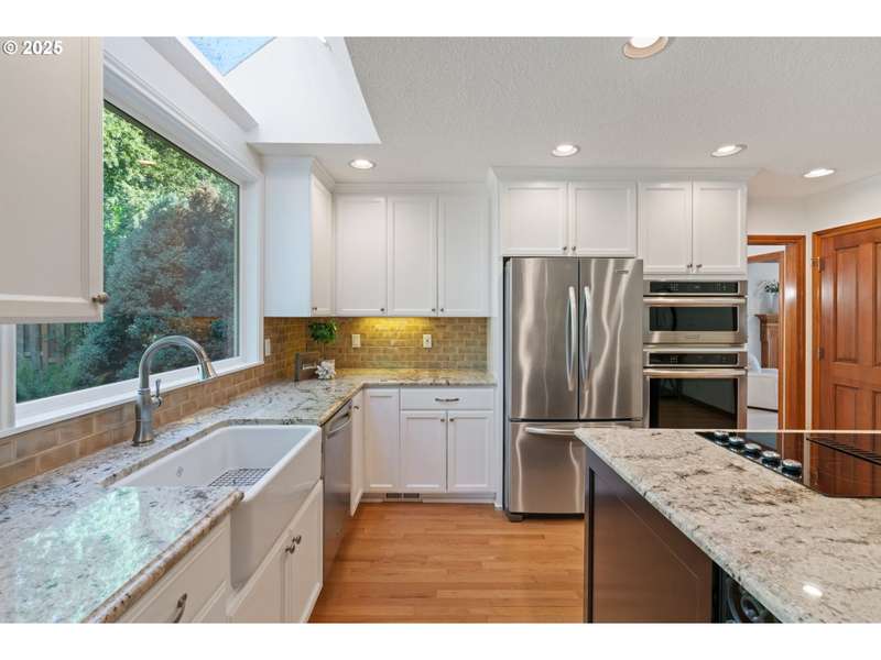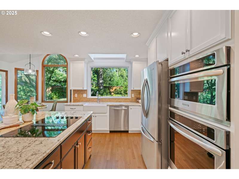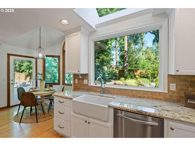 Charming farmhouse in sought-after Westlake neighborhood.With 4 bedrooms (including a spacious bonus room that can serve as a 4th bedroom, office, or media room), this home offers timeless style blended with modern comfort. Step inside to find fresh interior paint throughout and an inviting layout filled with natural light. The updated kitchen features farmhouse sink, granite counters and stainless appliances. Bathrooms have been thoughtfully renovated to complement the home’s classic charm. Retreat to the spacious primary suite, complete with a built-in window seat, custom bookcases, and a generous sitting area—a serene space to unwind. Backing to greenspace, enjoy a beautifully landscaped and private backyard that is ideal for relaxing or hosting. Take in the neighborhood ambiance from the welcoming covered front porch. Located just minutes from I-5 and Hwy 217, top-rated Lake Oswego schools, parks, restaurants, and shopping, this Westlake gem combines convenience with character.