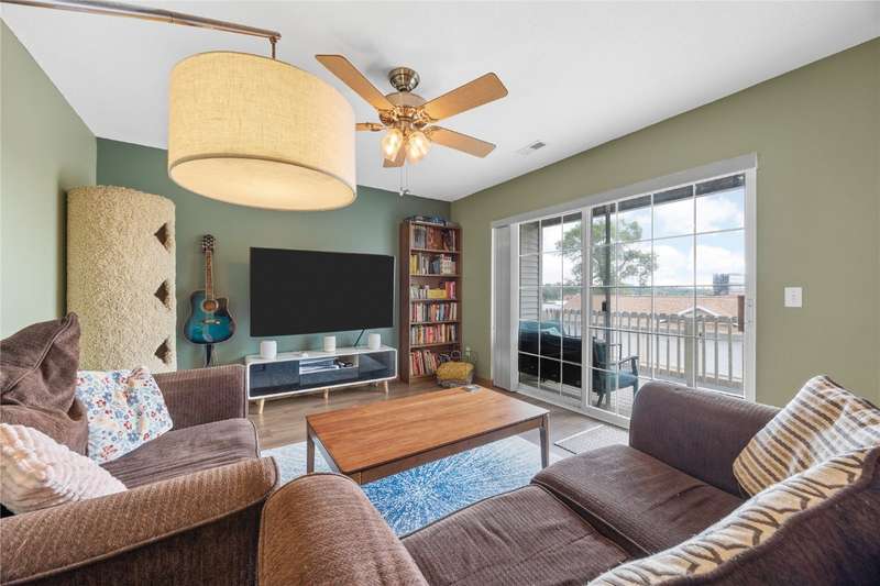 This beautifully updated 2-bedroom, 2-bath condo is the perfect mix of cozy and contemporary. Enjoy an open-concept living space with sleek vinyl plank flooring, fresh paint, and a calming green accent wall that sets the tone for relaxed living. The stylish kitchen features navy cabinets, updated countertops, and a passthrough for easy entertaining.The spacious living room opens to a private deck through large sliding glass doors—perfect for sipping morning coffee or unwinding at sunset. With in-unit laundry, a full suite of appliances, and smart layout that includes a versatile bonus space, this home checks all the boxes.Tucked in a quiet, pet-friendly community with low HOA dues, detached garage, and nearby green space, this condo is move-in ready and just minutes from parks, schools, shopping, and more.Whether you're a first-time buyer, downsizer, or investor this is one to see!