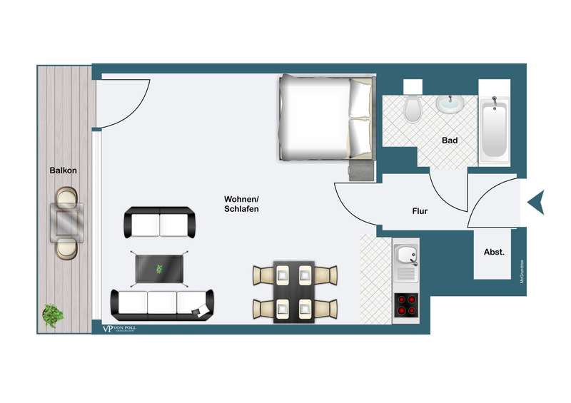 The well-kept, bright apartment has a spacious living/dining/sleeping area with direct access to the balcony and a bathroom with bathtub, toilet and washbasin. The fitted kitchen is included in the asking price and offers plenty of storage space as well as all the important appliances you need for everyday use. The vinyl flooring throughout the apartment is easy to maintain and gives the apartment a pleasant atmosphere. The windows are made of plastic and ensure good insulation of the rooms. Highlight: The apartment was renovated in 2019 and received new windows including balcony doors with external blinds, a new vinyl floor and a fresh coat of paint/plaster. The apartment is already vacant and is available for you to move into yourself or to rent out as soon as it is handed over. On request, we will also be happy to find you a solvent tenant for your new investment. We would be happy to present this property to you in a 360° virtual tour for a comprehensive first impression. You will receive the link when you download the exposé.