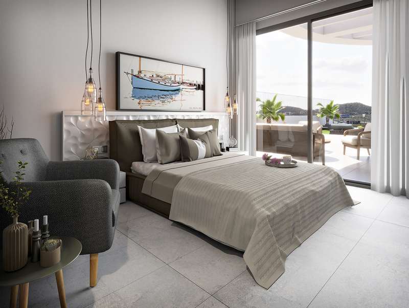 Inside these modern apartments you have either two or three spacious double bedrooms depending on the model, regardless they all come with two bathrooms, an open plan kitchen and dining areas, and a spacious living area with French-style windows that allow in ample natural light.