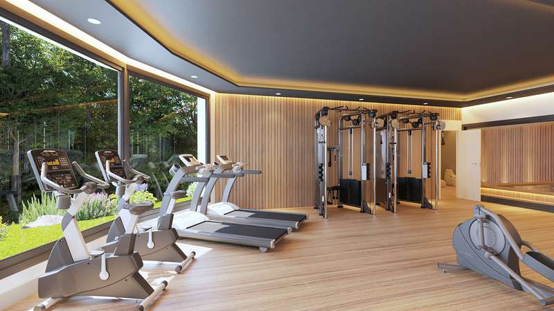 The project features thoughtfully designed communal areas for enjoying outdoor living, including a main swimming pool set within landscaped gardens, along with an indoor pool and a fully equipped gym. The gated community provides privacy and security, while the ground-floor homes include private gardens for added comfort and relaxation.