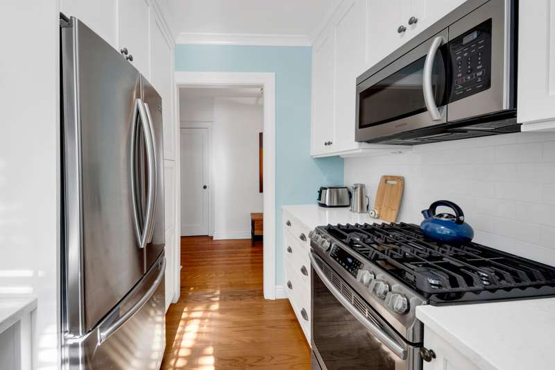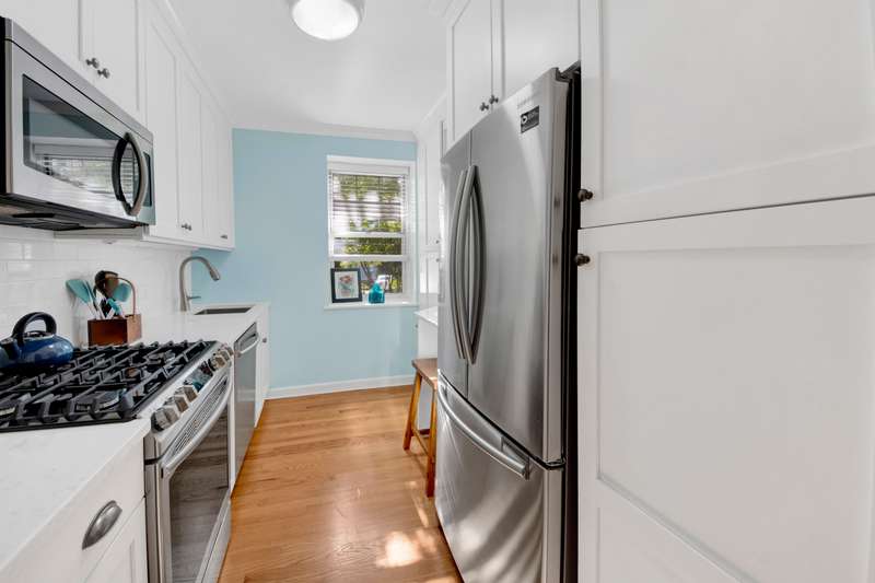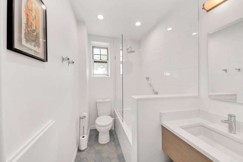 Beautifully renovated 1-bedroom, 1-bath unit at 50 N Broadway in White Plains. This bright home features recessed lighting and gleaming hardwood floors throughout. The modern kitchen offers white shaker cabinets, stainless steel appliances, and a built-in desk area with open shelving. The spacious living and dining areas are filled with natural light from large windows and provide a comfortable, open feel. The updated bathroom includes a sleek glass shower enclosure, hexagon tile flooring, and a contemporary vanity with open shelving. Conveniently located just 0.6 miles from the White Plains Metro-North station and within walking distance to bus transportation, this move-in ready home combines modern style, comfort, and everyday convenience in a prime location.