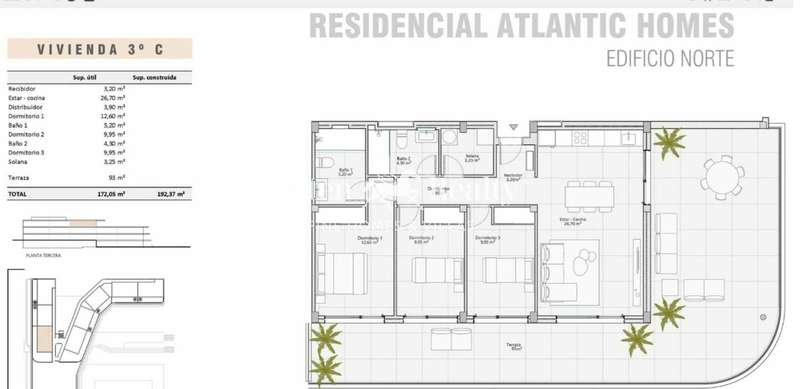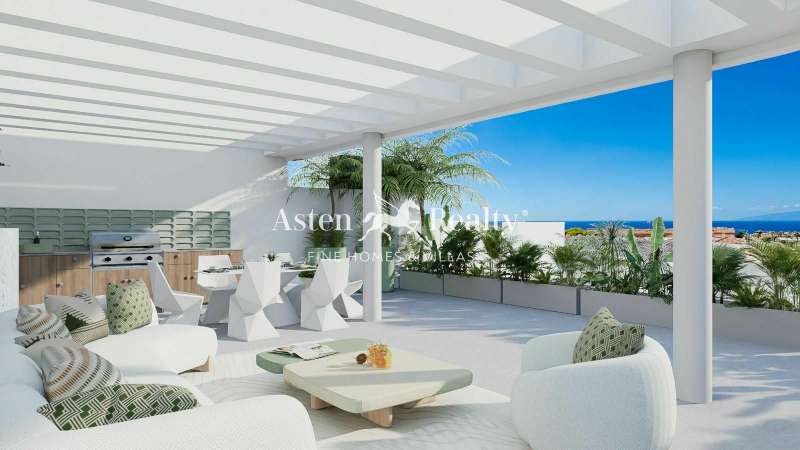The property is distributed as follows: entrance hall, living-dining room with an open-plan kitchen, 3 spacious bedrooms with built-in wardrobes, 2 bathrooms (one of them en-suite). All rooms have direct access to the 93 m2 terrace with panoramic views of the ocean and the island of La Gomera through large double-glazed sliding doors.