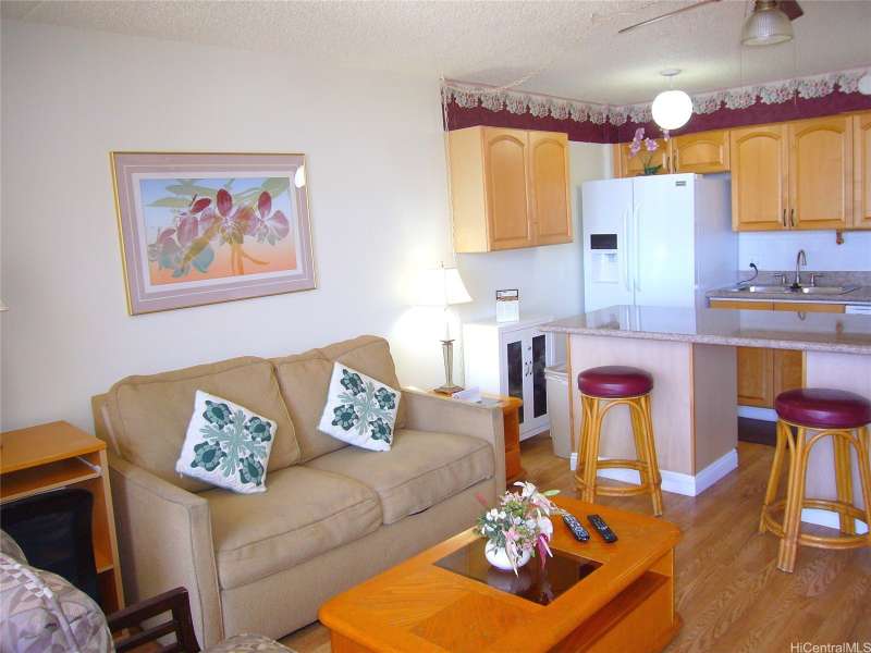 High floor well-maintained unit in the highly desirable Waikiki Banyan! Located just a block away from the famous Waikiki Beach and is within a short distance to restaurants, shopping, entertainment, Honolulu Zoo, and Kapiolani Park. This apt is a Legal Short-Term Rental condominium in the heart of Waikiki...one unassigned parking is also included. Upgraded cabinets, Granite counters and Laminate flooring as well as extra cabinets & built-ins makes this ...a terrific buy in todays market The Waikiki Banyan - a highly sought after building, known for its fantastic amenities, including a pool, whirlpool, BBQ areas, tennis court, Sauna & large recreation deck - all perfect for entertaining or relaxation. With 24-hour security, a convenient cafe, and on-site laundry facilities. Extra storage cabinets & built-ins. Microwave (2025), large refrigerator (ice maker is inoperable). Other fees include special assessment and Becker Sandwich Lease of $52.20/mo (ending Nov 29, 2035). Becker Sandwich Lease is available for purchase at $5,000. Buyer to confirm with Becker Properties if the buyer desires to purchase.