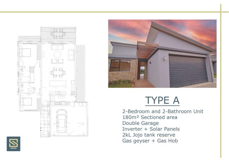 Brand new contemporary home in small cluster boasts modern finishes. Open plan kitchen, with separate scullery and generously sized living area lead onto a covered patio and enclosed garden with elevated outlook. There are two bedrooms and two bathrooms, with the main en-suite. This beautiful home also has a Jojo tank, double automated garage and aircon in the lounge and main bedroom and an inverter with solar. Two pets permitted, small to medium size dogs and cats. Call to arrange a viewing now!