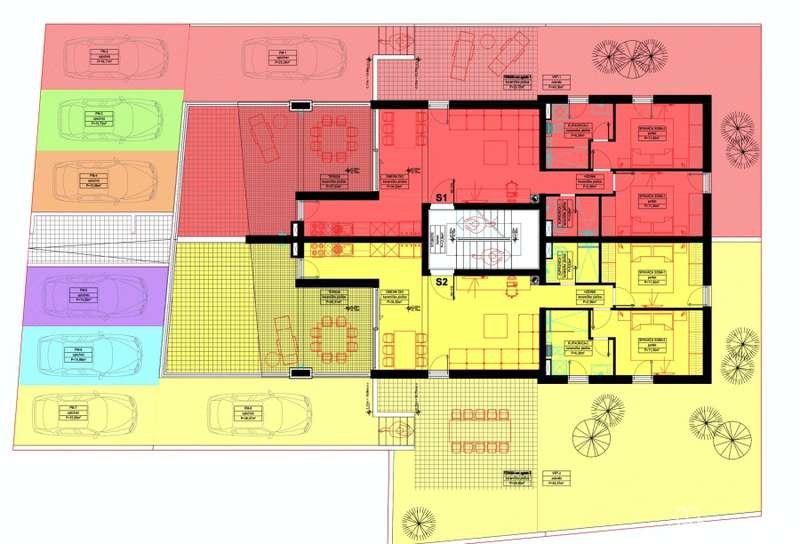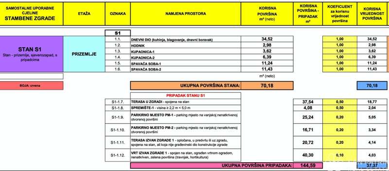 Apartment BS1 - Ground floor - living area 70.18 m2 (2 bedrooms + 2 bathrooms) + terrace (37 m2 - NW) + second terrace (21 m2) + storage room (4 m2) + garden (40 m2) + 2 outdoor parking spaces PM1 & PM2, total net area 107.55 m2 = €350,000