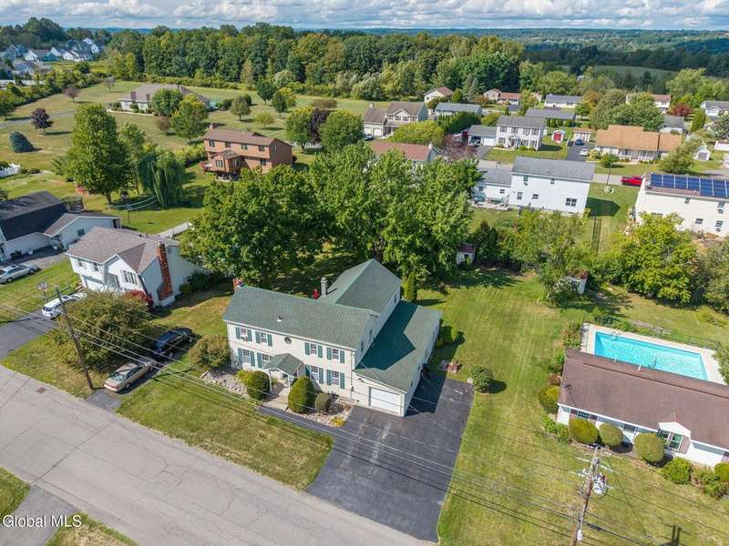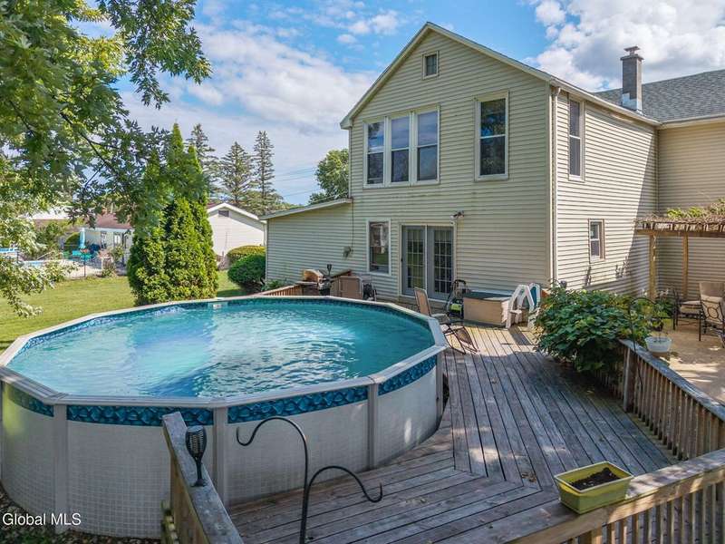 Walk into this meticulously maintained center hall colonial with many amenities. Updated custom dream kitchen opening to a park like setting yard with pergola and pool. Newer windows and new roof in 2025. All of the work has been done. Move in ready condition. Great location, easy access to capital district. Office or possible 4th bedroom.