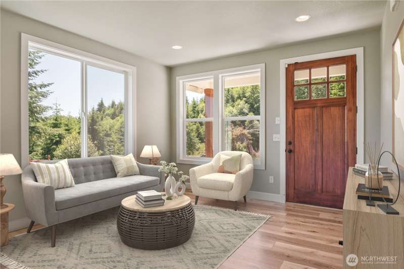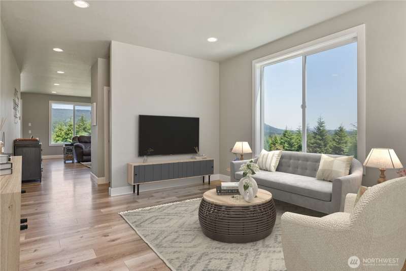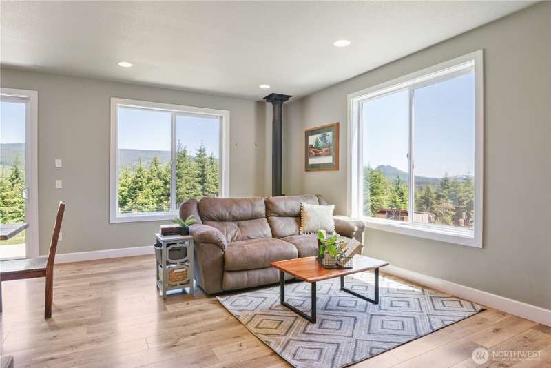 Modern Living meets natural beauty nestled on 13+ forested acres, offering privacy, space and style. Soaring windows flood the space with natural light and frame sweeping views. The grand kitchen has both beauty and function, featuring quartz countertops, stainless steel appliances, abundant storage and counter space. It flows into the dining area and family room, where a wood stove adds warmth and charm. The primary suite is a true retreat with a large walk-in closet and a spa-like bathroom. Two additional bedrooms and 1.5 baths round out the thoughtfully designed floorplan. RV parking, space for a shop and a small pasture ready for your hobby farm dreams. Potential to subdivide (buyer to verify). This is Northwest living at its best!