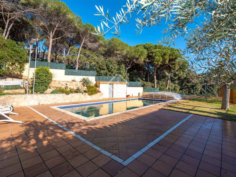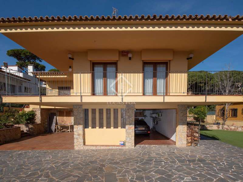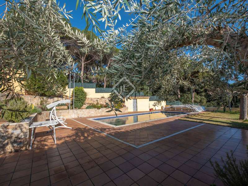 Lucas Fox presents this elegant and spacious villa located in the heart of Platja d'Aro, one step away from all amenities, restaurants and shops and 600 meters from the beach. The villa sits on a 1,055 m² plot and faces south. It has a constructed area of 291 m² and is distributed over two floors with independent access and connected with a staircase. The main floor has a spacious and bright living-dining room in two rooms with a fireplace and high windows that give access to a sunny terrace that surrounds the entire house. The kitchen with a central island has access to the porch with summer dining room and barbecue, garden and pool. This floor also has three double bedrooms, with built-in wardrobes, a large full bathroom and a toilet. On the ground floor, there are two double bedrooms with built-in wardrobes, a complete bathroom with a shower, a utility room, a wine cellar, a storage area and a garage for two cars. This floor has independent access and there is the possibility of converting it into an apartment. The house has a mature garden with fruit trees, an 11 x 4.5 meter saline chlorinated swimming pool, multiple porches and terraces, as well as a barbecue area. Contact us for more information.