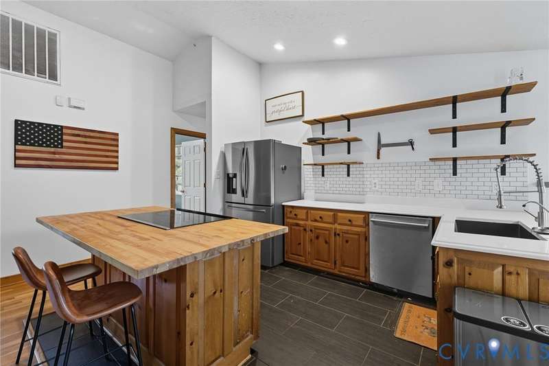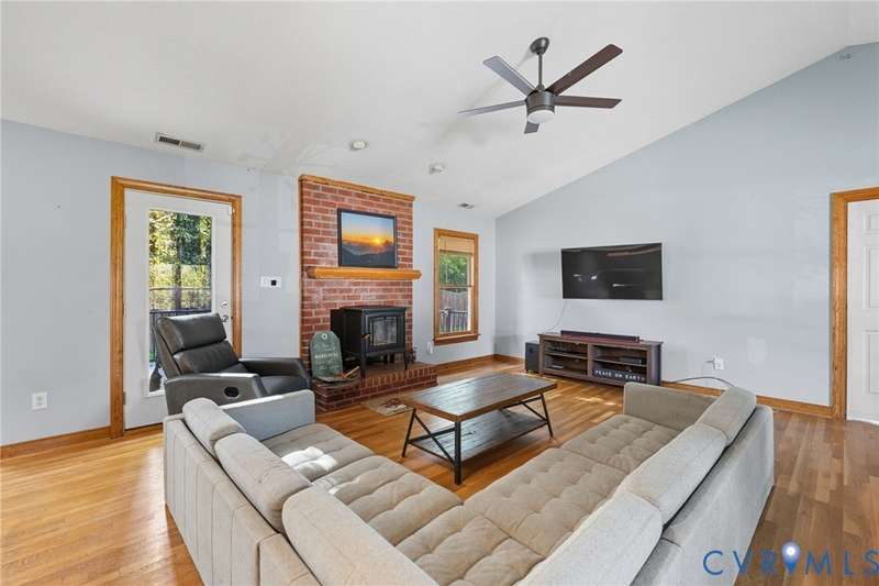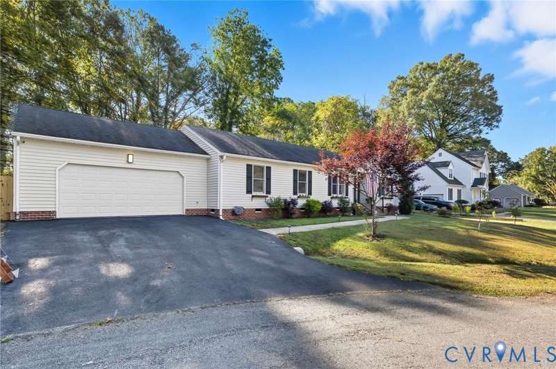 Welcome HOME to this beautifully maintained rancher in the established Tangle Oaks neighborhood of Mechanicsville. Tucked away at the end of a quiet cul-de-sac, this home blends charm with extensive modern updates. Inside, hardwood floors flow through the main living spaces and bedrooms, creating warmth and continuity. A large living area centers around a wood-burning fireplace, perfect for cozy evenings or entertaining. The open kitchen features upgraded countertops (2020), stainless appliances that convey, and a light-filled breakfast nook with space nearby to create a formal dining area if desired. The primary suite is privately positioned with a spacious closet and a fully renovated bath (2025) boasting a tiled shower, garden tub, and updated vanity. On the opposite side, two additional bedrooms share a freshly remodeled hall bath (2025) with custom finishes. Recent upgrades ensure peace of mind: new HVAC system (2025), water heater (2024), whole-house water filtration system (2017), French drain system (2020), new rear deck (2025), new front deck (2024), finished and insulated two-car garage with heating (2024), and a new asphalt driveway (2018). The freshly painted interior complements the updates, while the utility room adds convenience with durable flooring and conveying washer and dryer. Enjoy evenings on the back deck overlooking the quiet surroundings, or take in the welcoming community feel of Tangle Oaks. With easy access to interstates, dining, and shopping, this move-in ready home is the perfect Mechanicsville opportunity. Schedule your showing today!