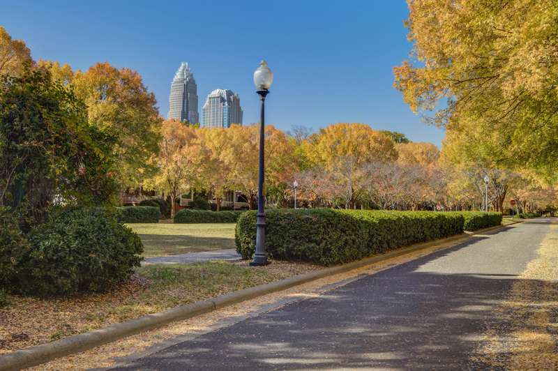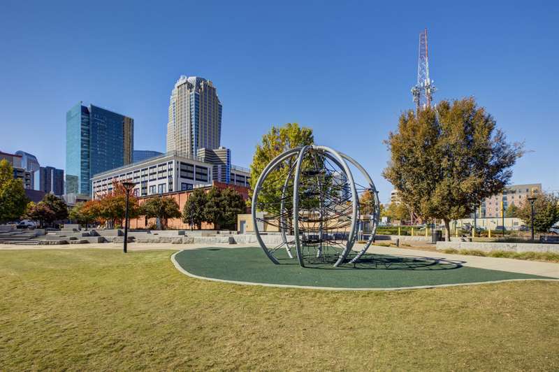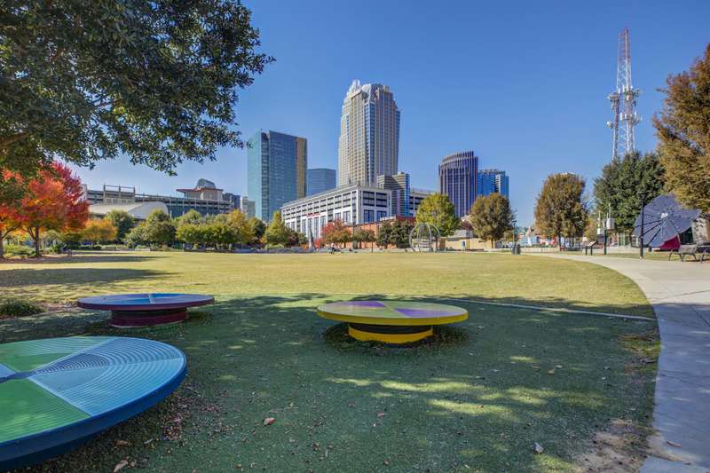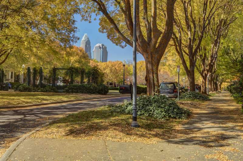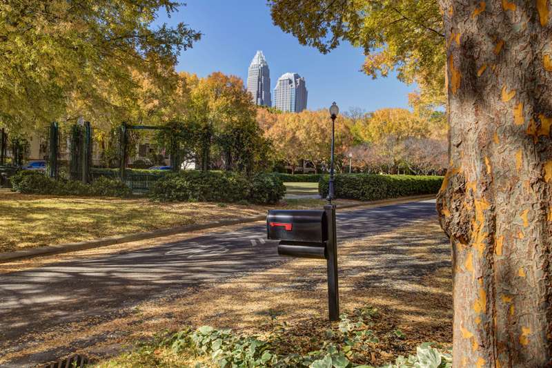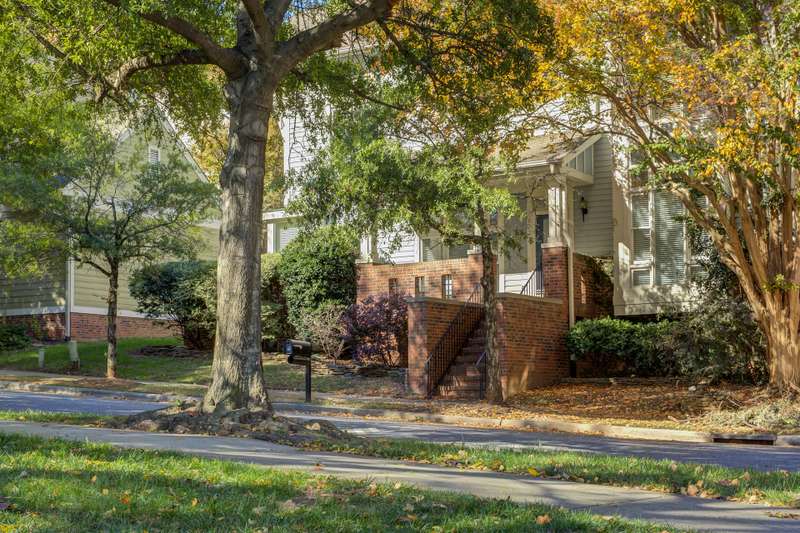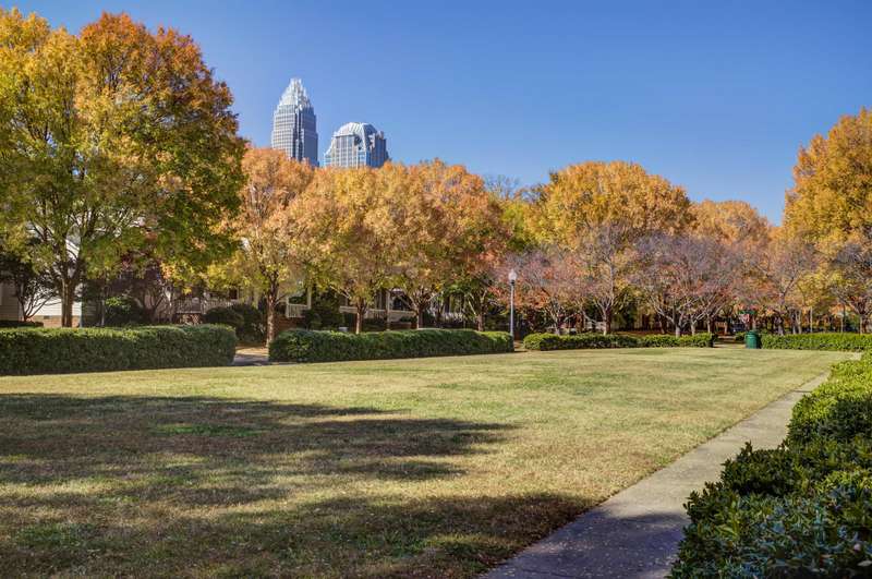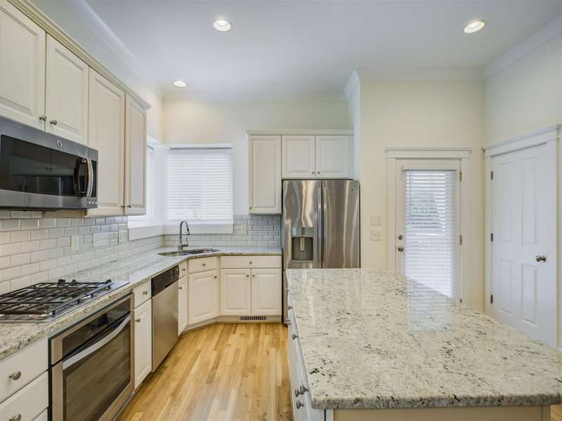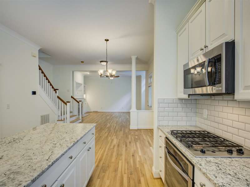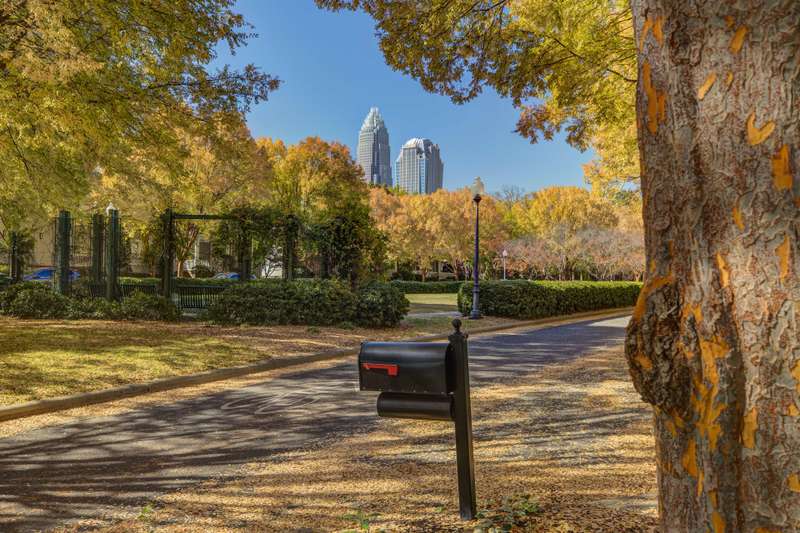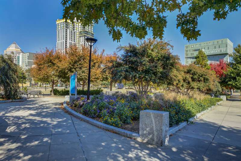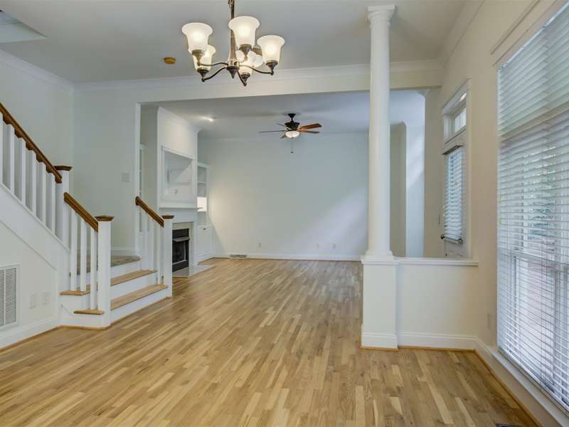 Bright, versatile First Ward townhome with 3 bedrooms, 2.5 bathrooms, -1,990 sq?ft, and a rare attached 2-car garage plus extra parking. 10-foot ceilings, oversized windows, and freshly refinished hardwoods create a light-filled, welcoming space. The living room features a fireplace with built-in bookshelves, perfect for cozy evenings or entertaining, while the dining area and spacious kitchen with island make hosting easy. Step outside to the private brick-enclosed patio for morning coffee or grilling. Upstairs, the primary suite includes two closets, a tiled shower, and a separate tub. Two additional bedrooms, a full bath, and convenient laundry room provide flexibility for guests, work-from-home setups, or hobby space. With only one shared wall, this home offers more privacy than most Uptown townhomes. Low HOA dues keep city living simple, and the location puts you walking distance from First Ward Park, 7th Street Market, Spectrum Center, restaurants, and offices. Move-in ready and perfect for a variety of lifestyles.