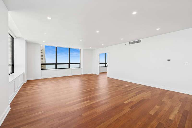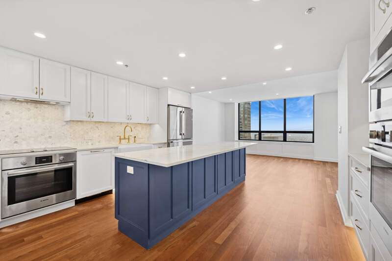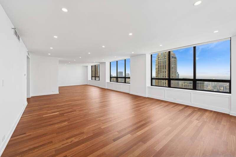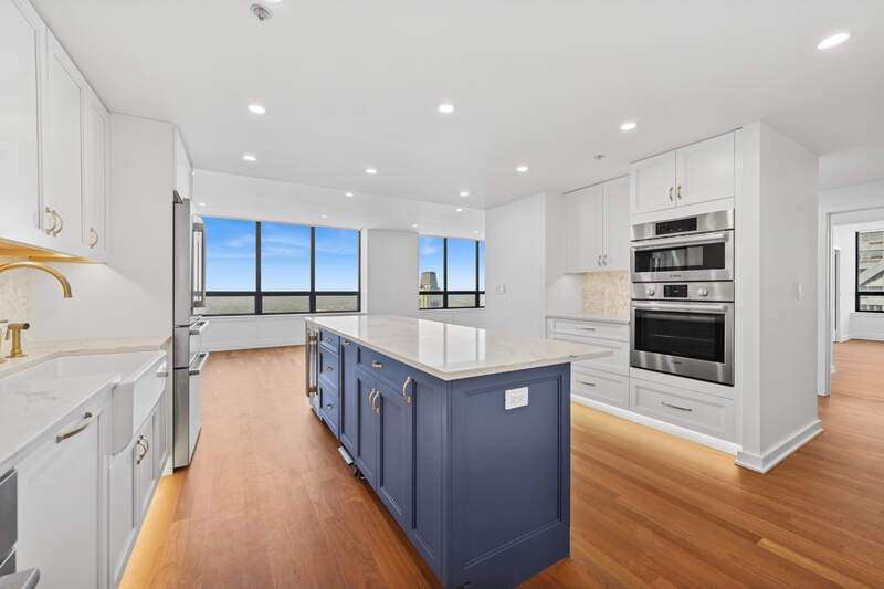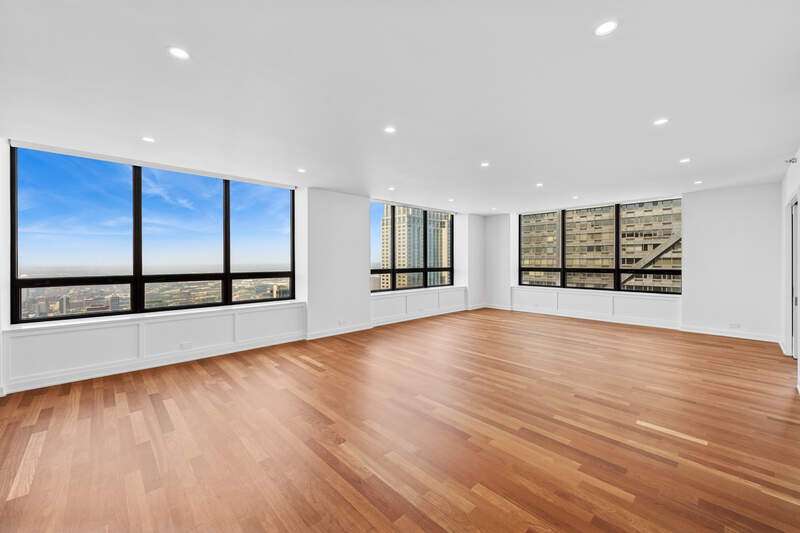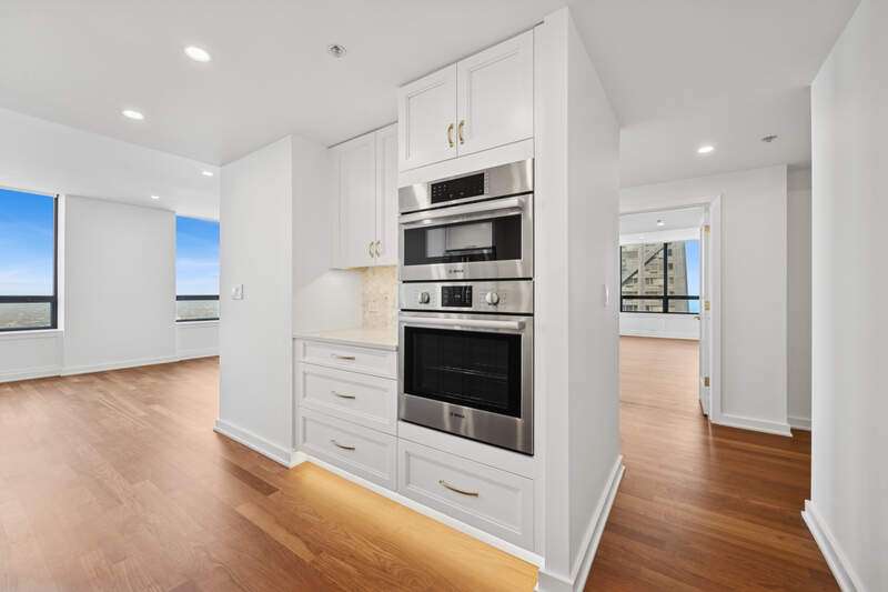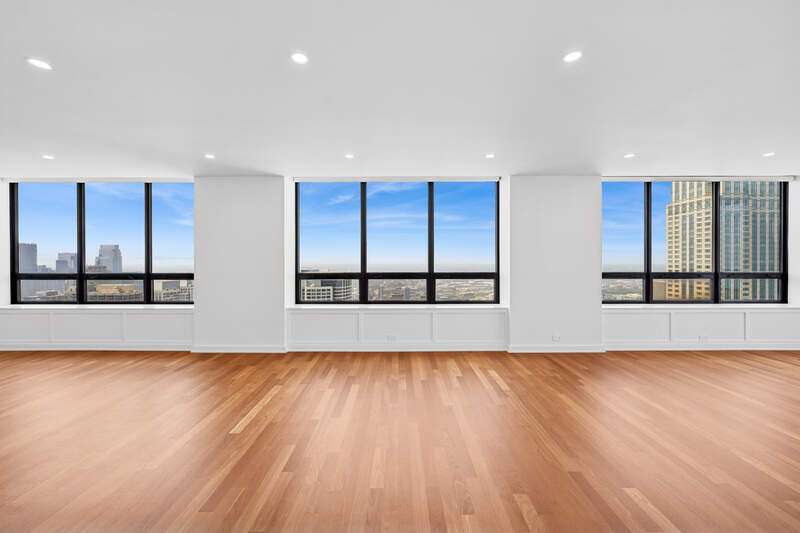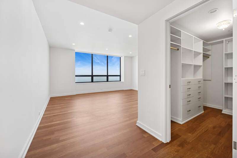 Soaring above the city on the 54th floor of the iconic Water Tower, Unit 5401 offers sweeping northwest corner views of Lake Michigan, the city skyline, and dramatic sunsets. This 3-bedroom, 4-bath, 2,754 SQFT residence has been exquisitely renovated with exceptional attention to detail and no expense spared. The chef's kitchen is outfitted with soft-closing cabinetry, quartzite countertops, a new backsplash, an oversized farmhouse sink, and premium appliances-including a convection oven/microwave, cooktop, and dual wine/beverage refrigerators (one integrated into the island, the other in the dining area). The oversized island offers additional seating and is accented by under-cabinet and toe-kick lighting. The walk-in pantry has been expanded and professionally organized by California Closets to maximize functionality and storage. The primary suite features two walk-in California Closets and two fully renovated spa-inspired bathrooms. Each bath includes custom showers with multi-directional sprays; one features a steam shower with aromatherapy. Both bathrooms are appointed with Toto toilets with bidet and heated seat functions, heated towel racks, soft-close vanities, linen cabinets, and anti-fog, light-adjustable mirrors. The two additional bedrooms also feature custom closets and beautifully renovated ensuite baths with porcelain tile, updated showers and tubs, and Toto toilets. One bath includes a luxurious heated bubble tub. Additional updates include a redesigned entryway coat closet, a fully remodeled laundry room with porcelain tile flooring, full-size washer and dryer, and built-in cabinetry. The entire home features Brazilian cherry hardwood floors over HOA-compliant soundproof underlayment. A new HVAC system with humidifier and remote-controlled thermostats ensures year-round comfort. Lighting has been thoughtfully upgraded with recessed LED fixtures, and the newly installed ceilings allow for added flexibility in electrical and lighting configurations. All window treatments are brand new, double-layered blinds with both light-filtering and blackout options (blackout shades in bedrooms only) and controlled by remote. Window ledges have been redesigned with quartzite for an elegant, durable finish. The entire residence has been repainted in warm, neutral tones. Residents at 180 E Pearson enjoy five-star Ritz Carlton amenities, including a fitness center, indoor pool, spa, room service, 24-hour concierge and doorman, and optional Carlton Club membership. Monthly leased parking is available for an unlimited number of vehicles. Ideally positioned along the Magnificent Mile, you're steps from luxury shopping, fine dining, and the lakefront.
