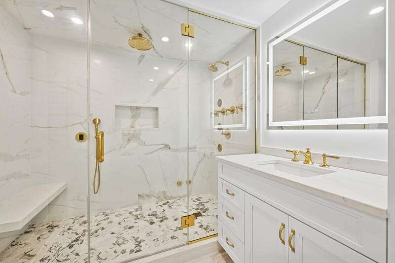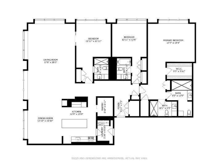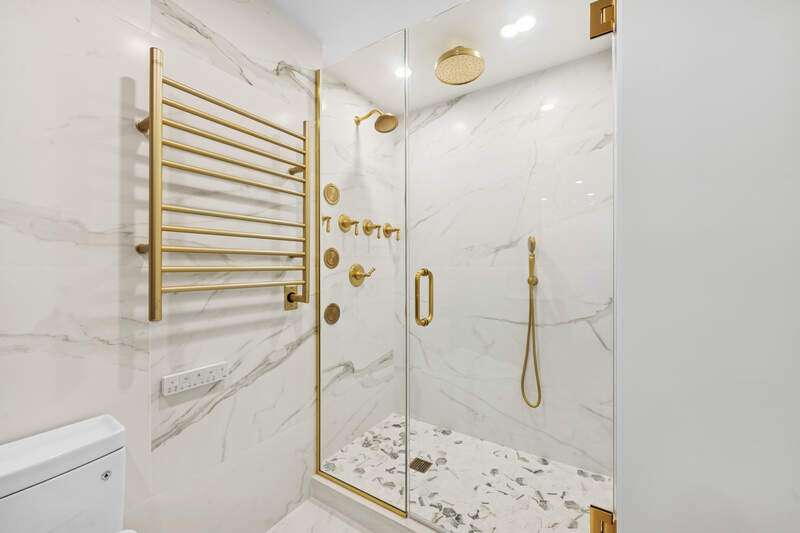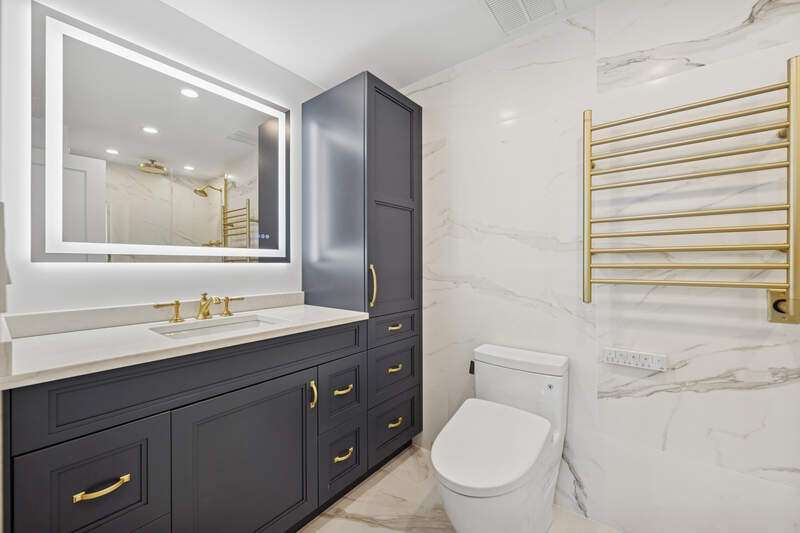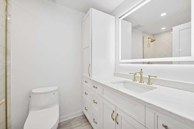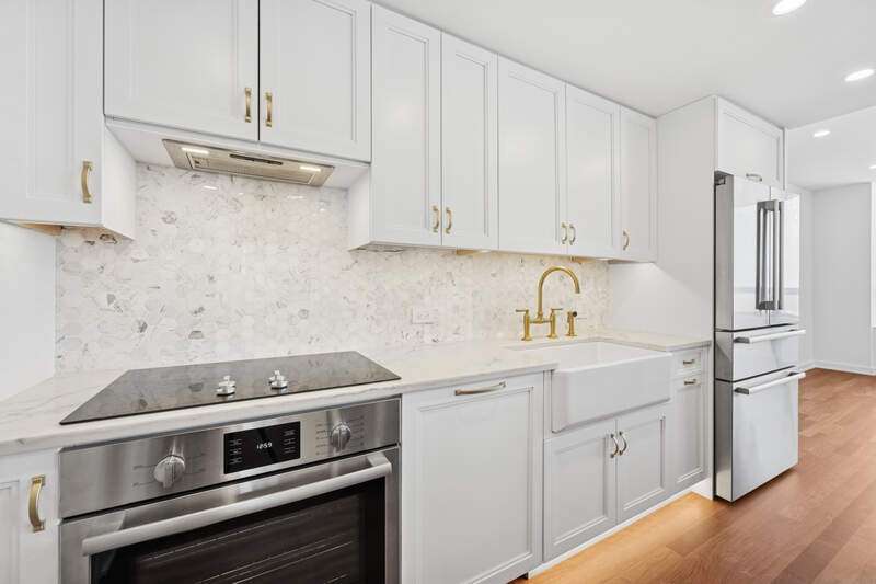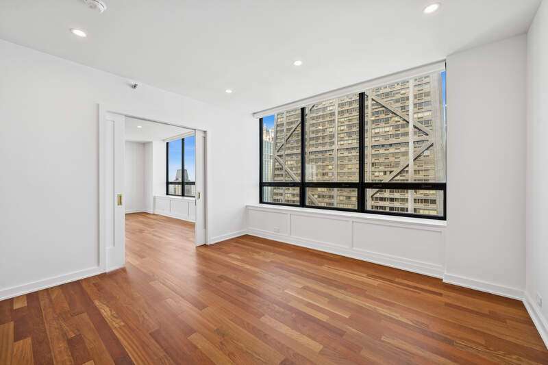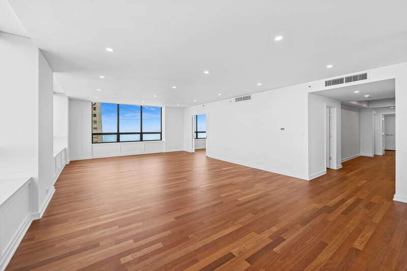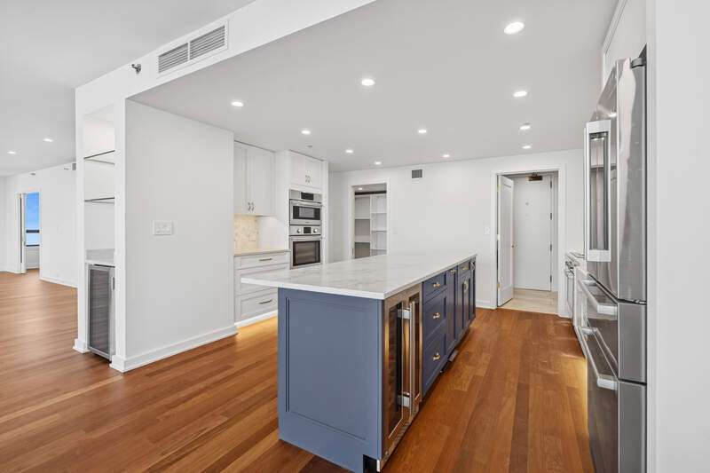 Soaring above the city on the 54th floor of the iconic Water Tower, Unit 5401 offers sweeping northwest corner views of Lake Michigan, the city skyline, and dramatic sunsets. This 3-bedroom, 4-bath, 2,754 SQFT residence has been exquisitely renovated with exceptional attention to detail and no expense spared. The chef's kitchen is outfitted with soft-closing cabinetry, quartzite countertops, a new backsplash, an oversized farmhouse sink, and premium appliances-including a convection oven/microwave, cooktop, and dual wine/beverage refrigerators (one integrated into the island, the other in the dining area). The oversized island offers additional seating and is accented by under-cabinet and toe-kick lighting. The walk-in pantry has been expanded and professionally organized by California Closets to maximize functionality and storage. The primary suite features two walk-in California Closets and two fully renovated spa-inspired bathrooms. Each bath includes custom showers with multi-directional sprays; one features a steam shower with aromatherapy. Both bathrooms are appointed with Toto toilets with bidet and heated seat functions, heated towel racks, soft-close vanities, linen cabinets, and anti-fog, light-adjustable mirrors. The two additional bedrooms also feature custom closets and beautifully renovated ensuite baths with porcelain tile, updated showers and tubs, and Toto toilets. One bath includes a luxurious heated bubble tub. Additional updates include a redesigned entryway coat closet, a fully remodeled laundry room with porcelain tile flooring, full-size washer and dryer, and built-in cabinetry. The entire home features Brazilian cherry hardwood floors over HOA-compliant soundproof underlayment. A new HVAC system with humidifier and remote-controlled thermostats ensures year-round comfort. Lighting has been thoughtfully upgraded with recessed LED fixtures, and the newly installed ceilings allow for added flexibility in electrical and lighting configurations. All window treatments are brand new, double-layered blinds with both light-filtering and blackout options (blackout shades in bedrooms only) and controlled by remote. Window ledges have been redesigned with quartzite for an elegant, durable finish. The entire residence has been repainted in warm, neutral tones. Residents at 180 E Pearson enjoy five-star Ritz Carlton amenities, including a fitness center, indoor pool, spa, room service, 24-hour concierge and doorman, and optional Carlton Club membership. Monthly leased parking is available for an unlimited number of vehicles. Ideally positioned along the Magnificent Mile, you're steps from luxury shopping, fine dining, and the lakefront.