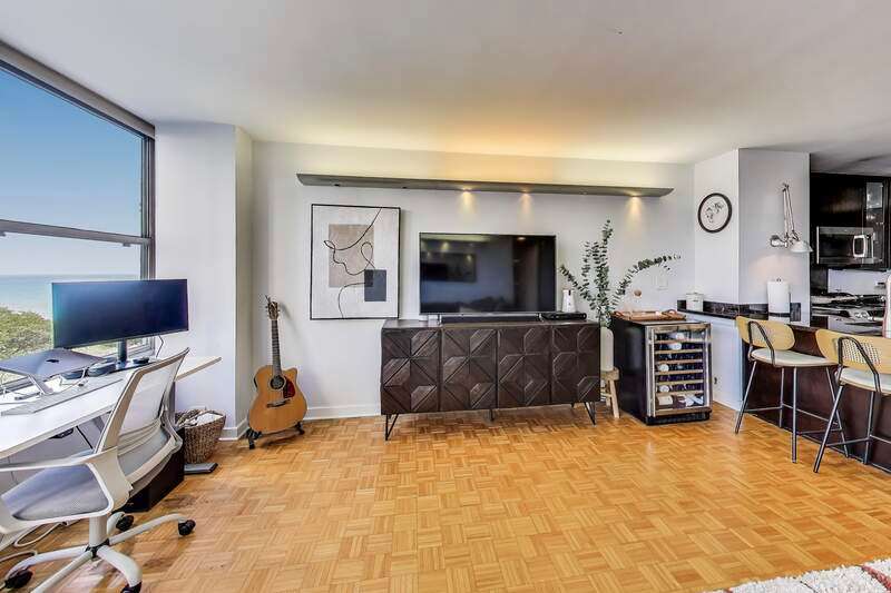 Perfect one bedroom with amazing lake views in the heart of the vibrant Goldcoast! Stunning views from rooftop deck of the city and lake. Step out side your door to all the best downtown Chicago shopping and dining. Newer Kitchen with solid espresso cabinetry, high-end stainless-steel appliances, granite counters, breakfast bar and additional built-in pantry. Bathroom features glass shower doors and espresso vanity with Duravit sink. Assessments include all the amenities rooftop sundeck, 24hr Doorstaff, laundry, dry cleaners, internet and all bills except electric. Building has valet parking and elevator. Situated on tree lined Bellevue Street, with the beach and restaurants all on your doorstep!