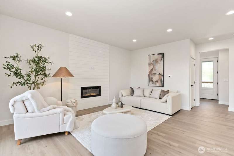 Presale New Construction – Estimated Completion 12/31/2025! Modern 3-bedroom, 2.5-bath home featuring an open-concept with durable wood-style flooring, spacious living room and a well-designed kitchen w/ quartz countertops, pantry, and island. Upper floor offers a primary suite w/ private bath and walk-in closet, plus two additional bedrooms and laundry room. Enjoy outdoor living with a covered front porch, rear patio, and fully fenced yard. Heat pump with A/C, oversized garage. No HOA. Buyer can still choose interior paint colors w/optional upgrades at additional cost. 1 year standard Builder warranty. Prime location-minutes to I-5, schools, Chambers Bay, Pointe Ruston dining and entertainment. Secure this home now before completion.
