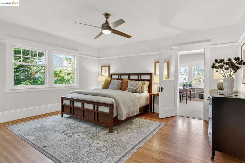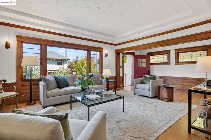 Perfectly positioned between Wildwood Elementary and all the offerings on Lakeshore and Grand Ave, 541 Boulevard Way is a 3+ bedroom, 2 bath house with original gumwood paneling and trims, period details like hardwood floors, stained glass windows, a tray ceiling, built-ins, and a vintage tile fireplace, plus contemporary updates in the kitchen and baths. Generous room sizes and flexible bonus spaces (wait ‘til you see this primary suite ++ with three separate rooms and two walk-in closets). Low maintenance landscaped back and front gardens with professional pavers and stonework. Garage and tall basement with laundry, ample storage, and workspace galore, located in Best-of-the-East-Bay Piedmont.