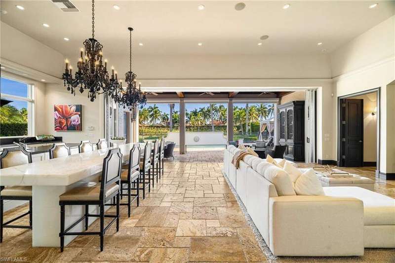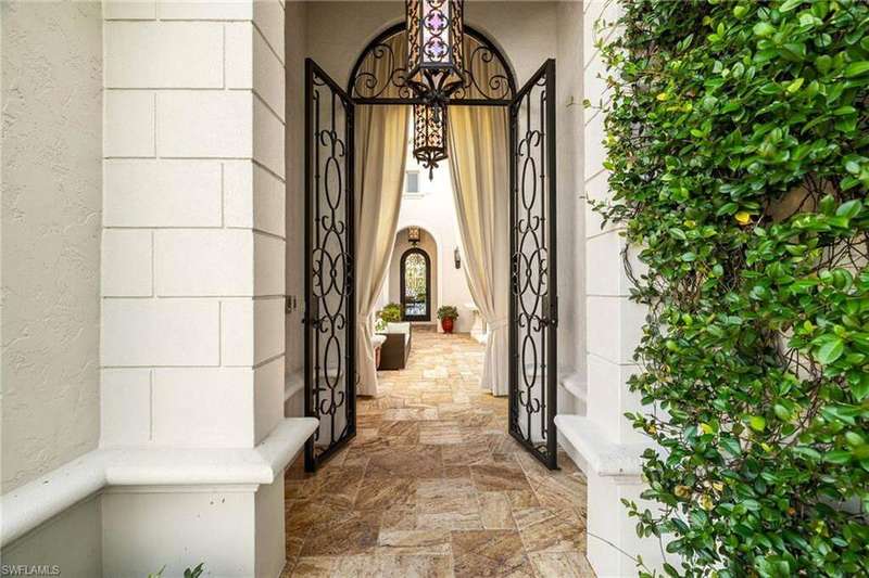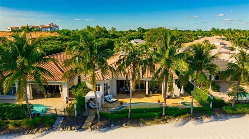Welcome to your dream beach and waterfront retreat- stunning 3536 square ft custom-built beachfront home tucked away in an exclusive gated luxury community. Perfectly positioned on a quiet cul-de-sac, this residence offers privacy and elegance with a modern sophisticated twist. Step inside to discover an open-concept floor plan highlighted by custom stone tile flooring, designer lighting, and expansive windows that bring the lush landscape and sunshine in for your enjoyment. The gourmet kitchen features high-end appliances, a gas cooktop, and a spacious island perfect for entertaining. Step outside to your resort style backyard with inground pool, hot tub and generous lounge space, perfect for relaxing or hosting gatherings by the beach. Miromar features 700 acres of fresh-water lakes, with boating, fishing, swimming, water skiing, 3 miles of sand beaches, Caribbean style beach grill, club house, full-service country club for evening dinning, pool, full-service spa, fitness center, golf, tennis, pickleball, volleyball, basketball, bocce, two marinas, boat rentals and many other luxurious amenities.