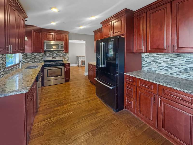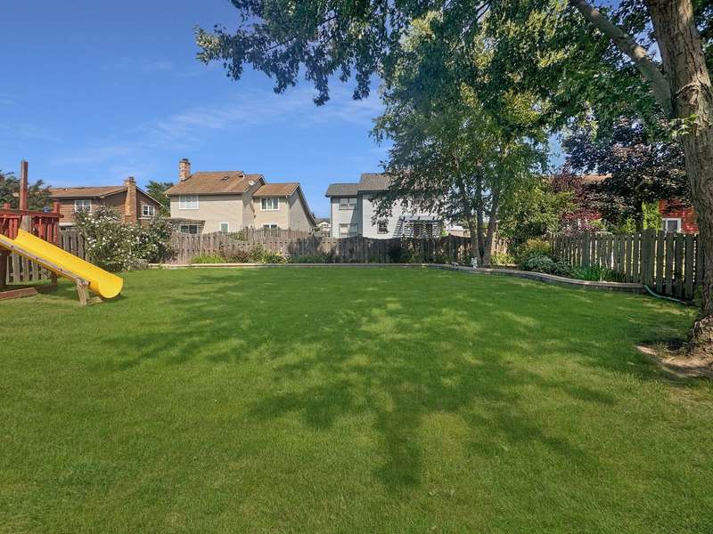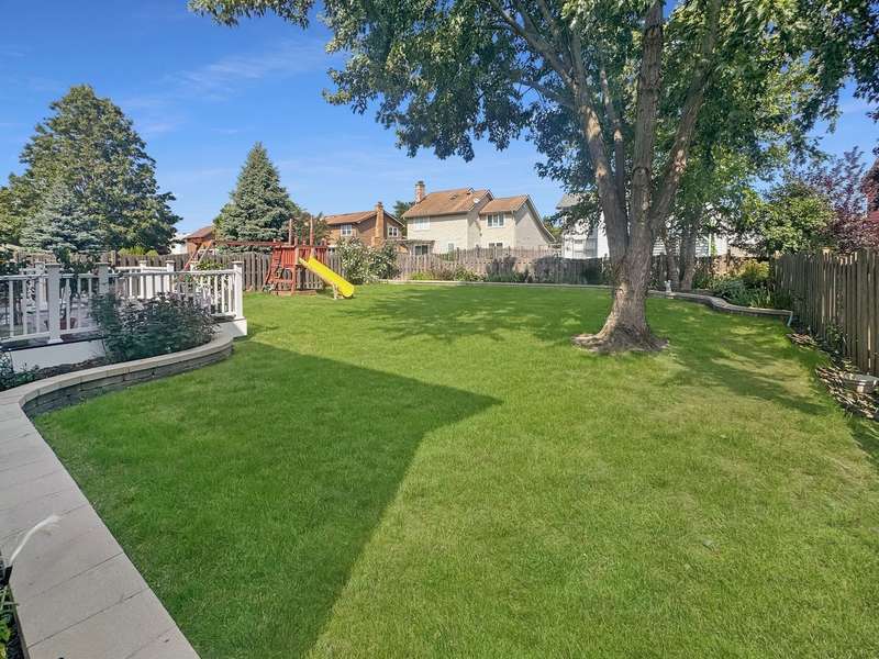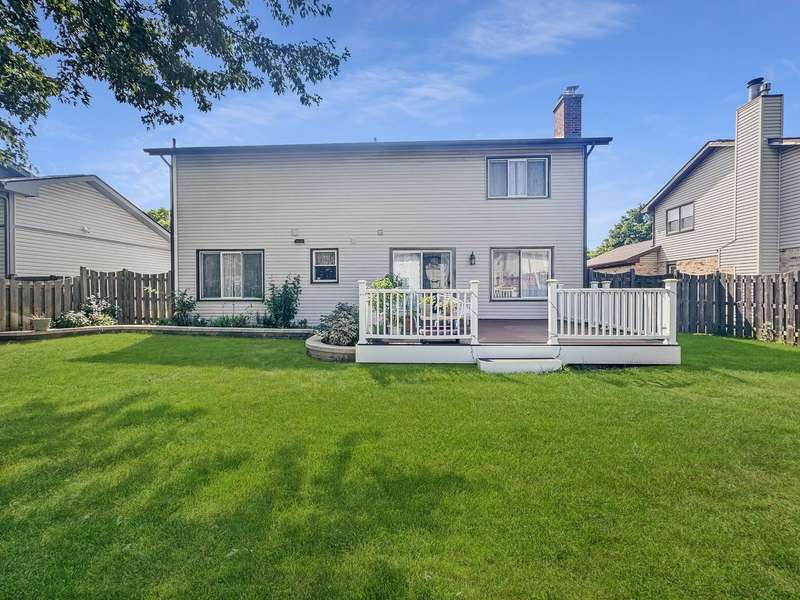 Stunning Home with Exceptional Outdoor Living! This beautifully updated home with over 3000 square feet of living space offers 4 spacious bedrooms, 3 full bathrooms, a finished basement, and a 2-car attached garage. The professionally landscaped front and back yards are truly one of a kind, featuring stone retaining walls in yard and around the home, maintenance-free Trex deck (2022), an irrigation system, and a fully fenced yard. Inside, the first floor boasts hardwood floors, detailed decorative floor molding throughout home, and a convenient first-floor laundry room. The kitchen is a chef's dream with granite countertops, stainless steel appliances, ample cabinet space, and sliders leading to the deck. The family room has a wood-burning fireplace and crown molding. Finished basement with office and recreation room with plenty of storage. A full bathroom on the main level offers added convenience. Upstairs, the spacious primary suite includes two walk-in closets and a private bath with ceramic flooring and dual vanity. All bedrooms have a ceiling fan for comfort year-round. Additional highlights include a new roof and fascia (2022) and a location that's just minutes from shopping, dining, and only a few blocks from the high school. This is truly a special home-prepare to be impressed!