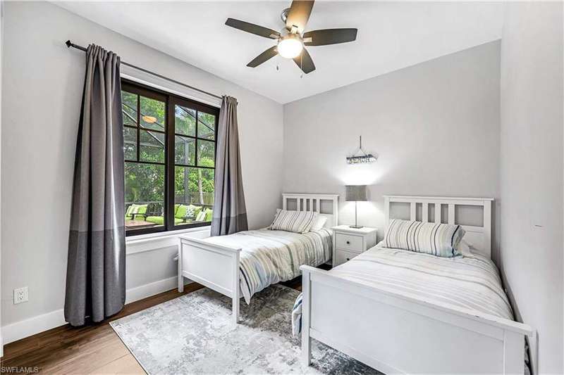 Your Florida Paradise Awaits! Discover this like-new 2016 build, 4 bedroom, 2.5 bath home in the Naples Twin Lakes neighborhood. With an elevated yard and 12-foot vaulted ceilings, an open floor plan, impact windows, and high-end finishes, this residence is intelligently designed and exudes modern elegance. The gourmet kitchen features newer stainless-steel appliances and ample storage, perfect for any culinary enthusiast. Step outside to your private oasis: a heated large saltwater pool surrounded by lush landscaping and an expansive lanai, ideal for relaxation or entertaining. Located on a quiet street with no HOA, this home offers the peace and privacy you desire, with numerous options to walk and bike to restaurants or Naples' pristine beaches. This home is a prime investment opportunity with years of strong performing income record and return guests, 2025 HVAC system, just minutes from Clam Pass Beach, Waterside Shops, Mercato, Venetian Village with world-class dining, and top-rated schools like Sea Gate Elementary. Fully furnished and turnkey, it's ready for you to enjoy and / or rent for income. Don't miss this rare chance to own a slice of paradise.
