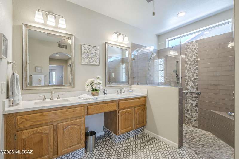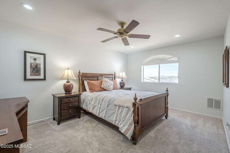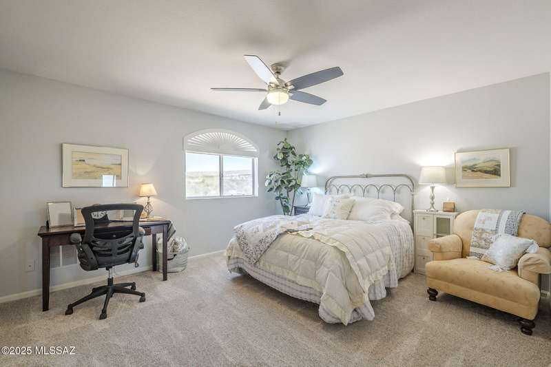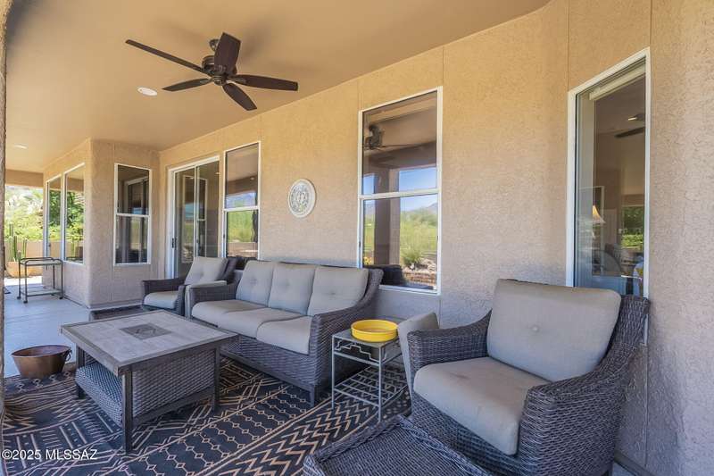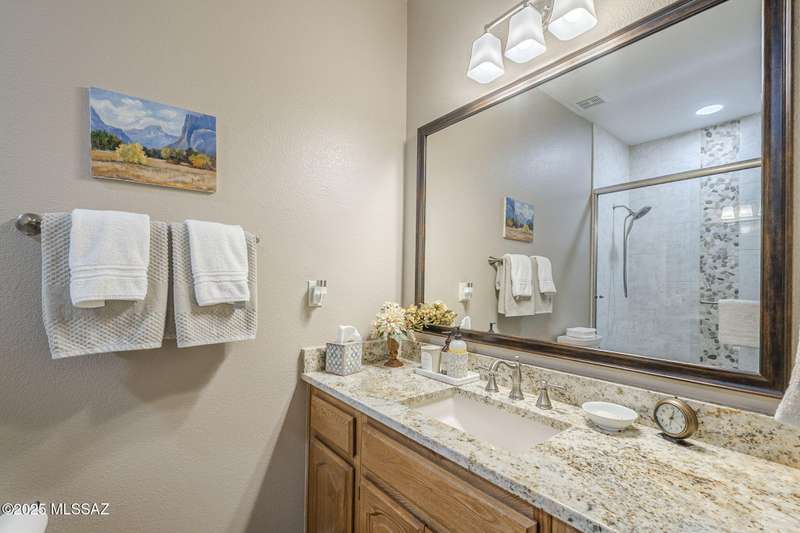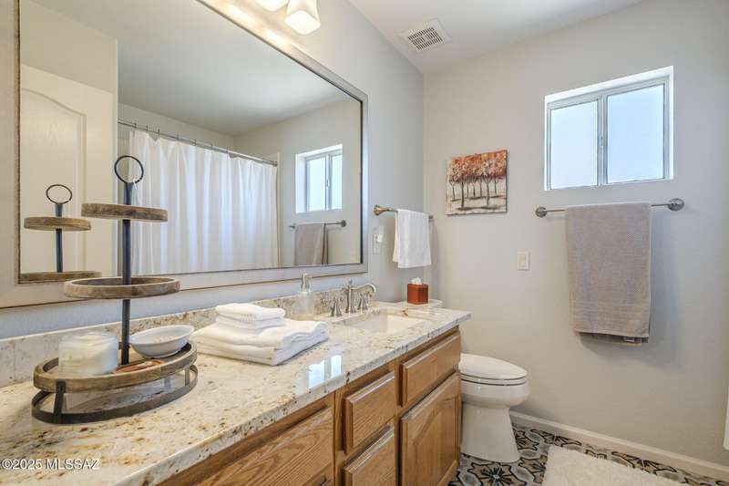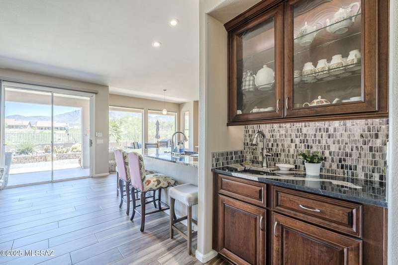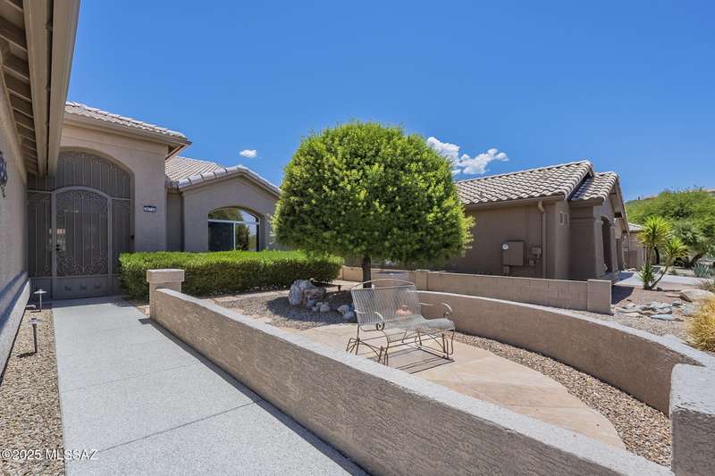 The stunning golf course & mountain views from the covered patio will delight you and your guests. This well appointed 4 bedroom 2.5 bath Galleria model is open and bright. The elegantly remodeled interior has updated flooring, cabinets, countertops, stainless steel appliances, windows, paint, which won't disappoint. Guests will enjoy their choice of your ''upstairs casita'' with updated bathroom and separate AC, or the extra downstairs guest room. The den/office offers even more possibilities. Enjoy the large 3 car garage w/storage with side service door. Your SaddleBrooke experience awaits you!
