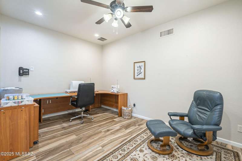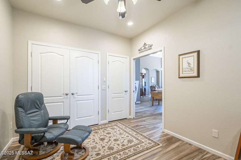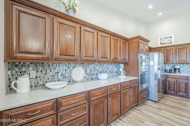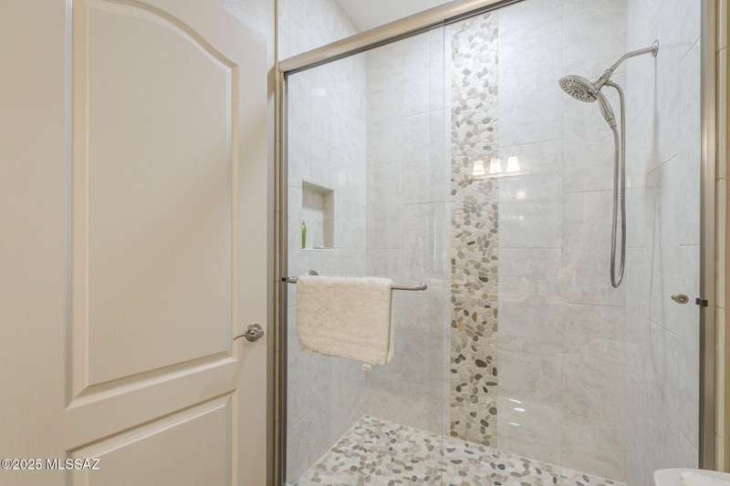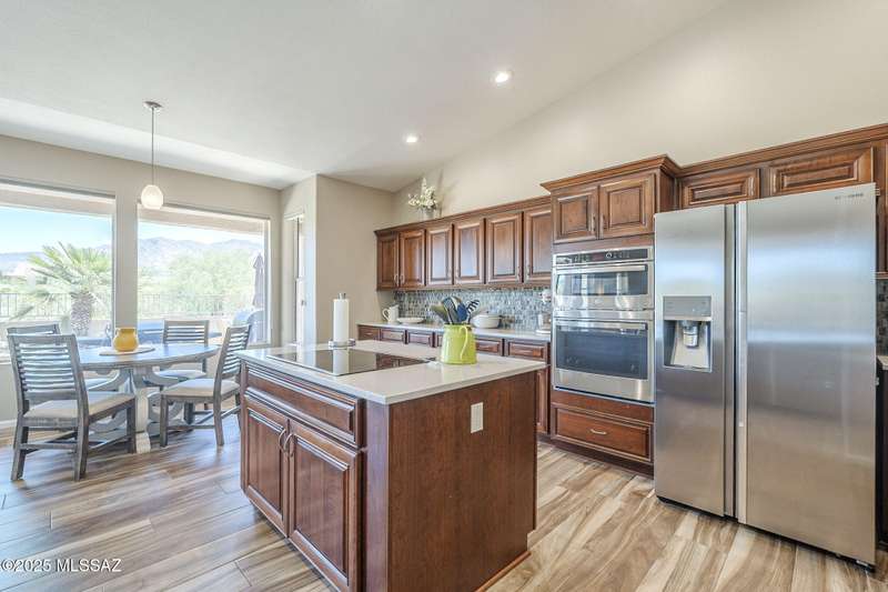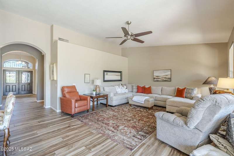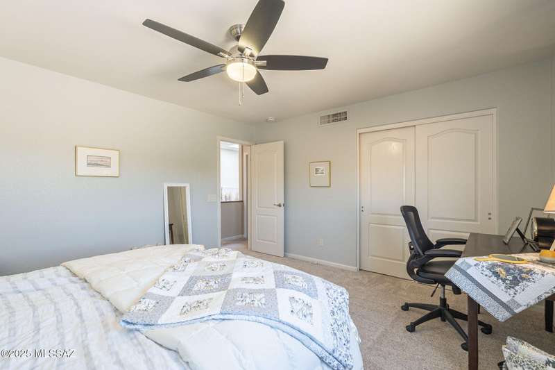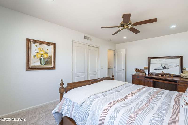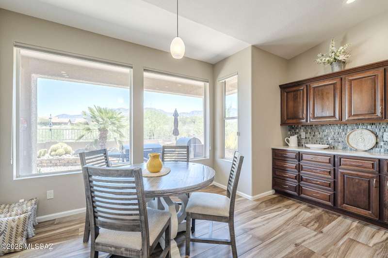 The stunning golf course & mountain views from the covered patio will delight you and your guests. This well appointed 4 bedroom 2.5 bath Galleria model is open and bright. The elegantly remodeled interior has updated flooring, cabinets, countertops, stainless steel appliances, windows, paint, which won't disappoint. Guests will enjoy their choice of your ''upstairs casita'' with updated bathroom and separate AC, or the extra downstairs guest room. The den/office offers even more possibilities. Enjoy the large 3 car garage w/storage with side service door. Your SaddleBrooke experience awaits you!