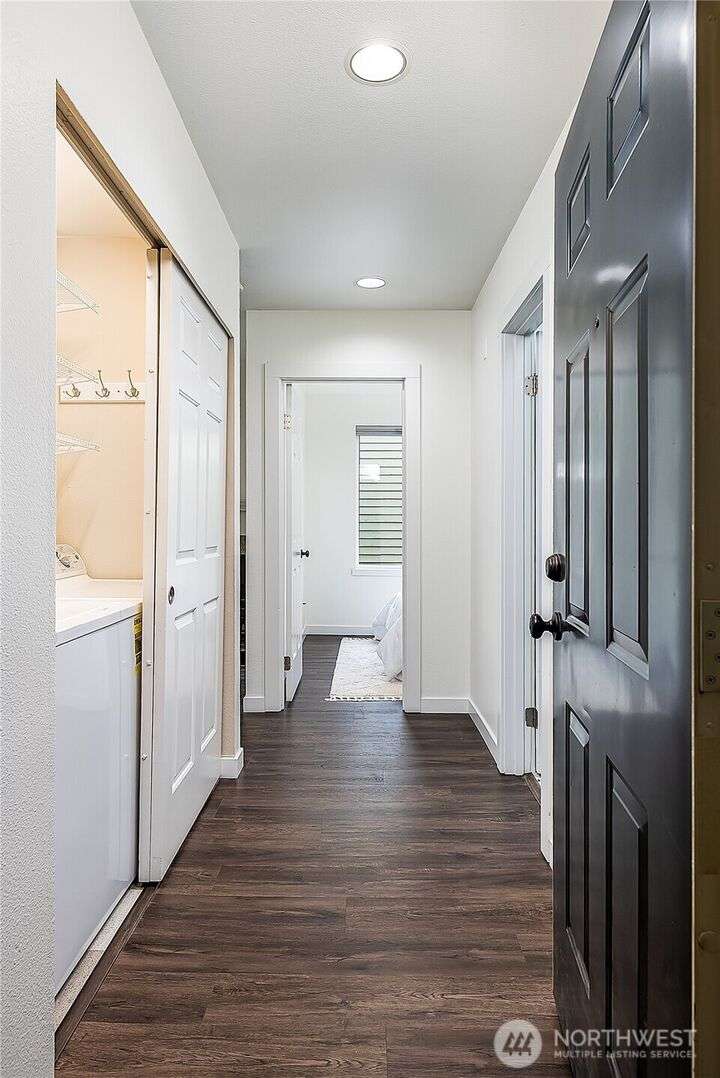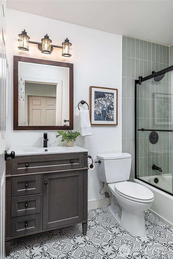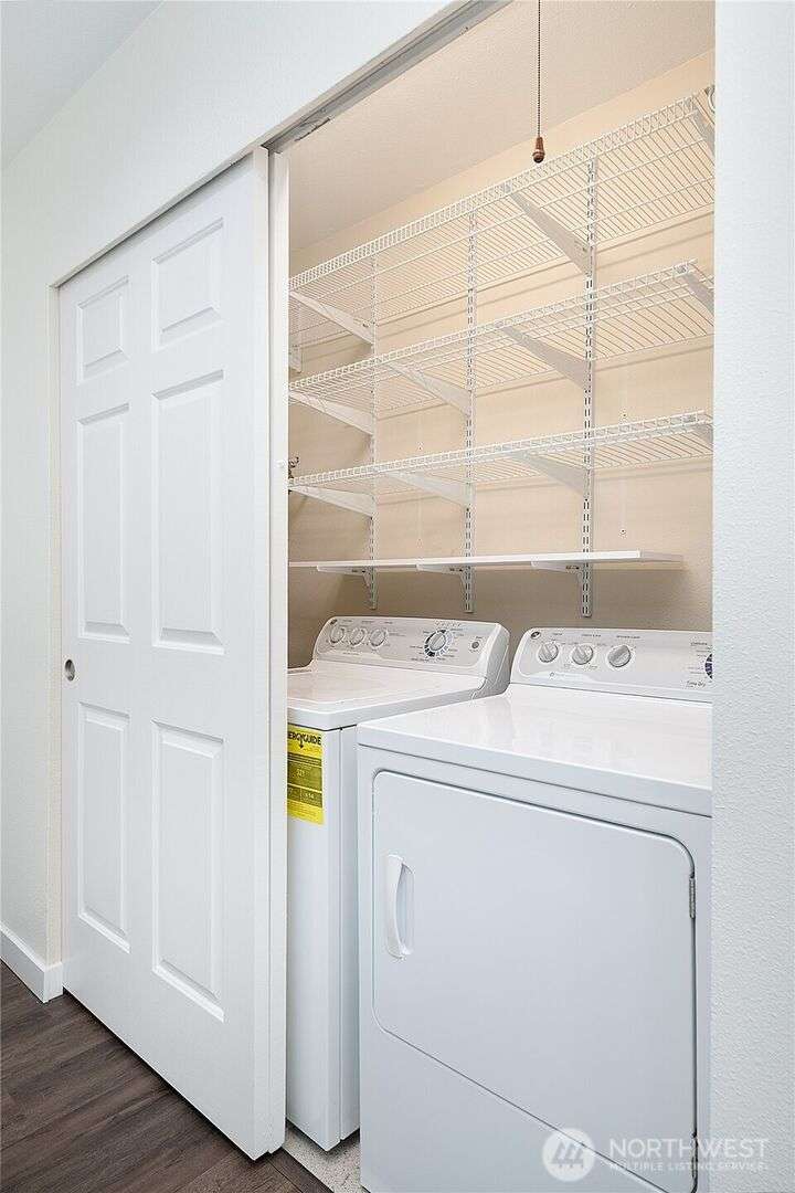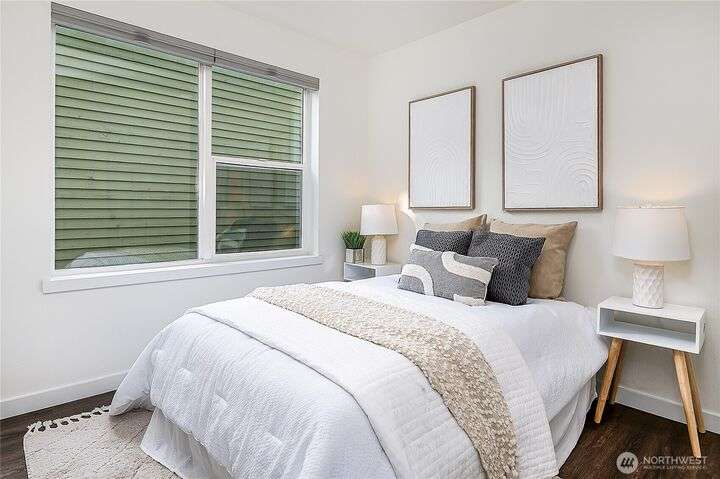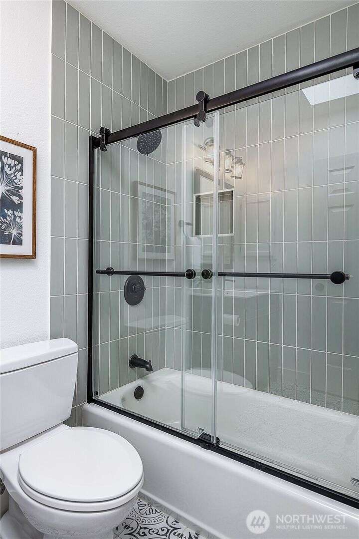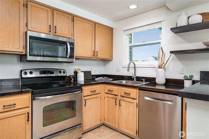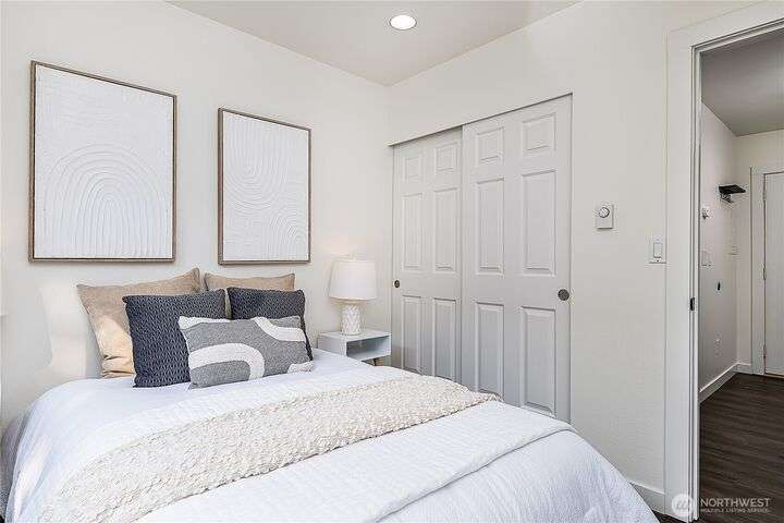 Enjoy the best of Wallingford living in this TOP FLOOR SE CORNER unit, where location and peek-a-boo city views create an exceptional urban retreat. Expansive picture windows frame lush treetop views. Thoughtful upgrades include LVP flooring, butcher block countertops, fully remodeled bathroom with sky light, and updated blinds throughout. Additional highlights: fresh paint, a full-sized W/D, wood-burning fireplace, one parking spot, storage closet, and rooftop deck with sweeping Lake Union and city views. This small, quiet community of three buildings offers a secure entry, elevator access, with courtyard/trees and privacy. Pet friendly.Steps from the best of city living—coffee shops, eateries, BG trail, Gas Works Park, Fremont and more.