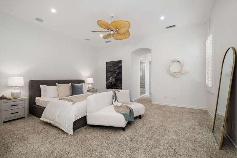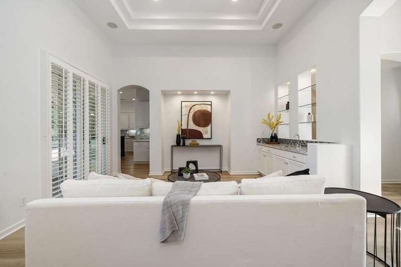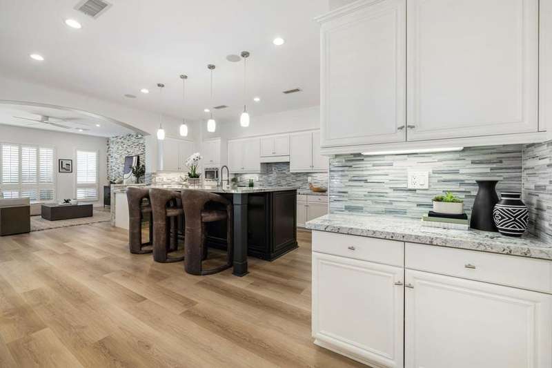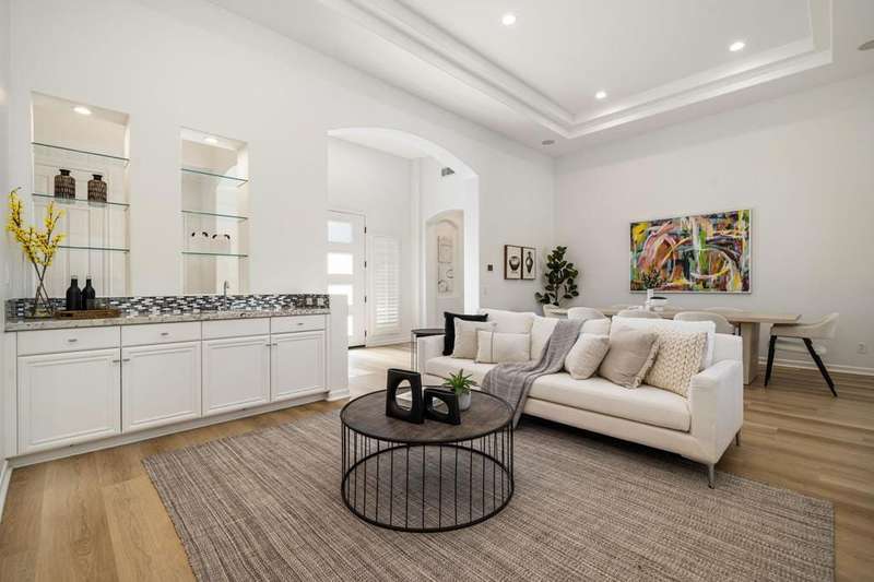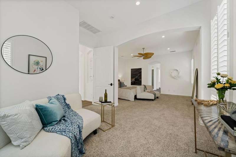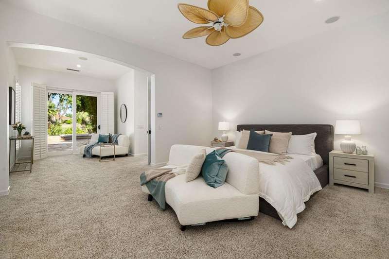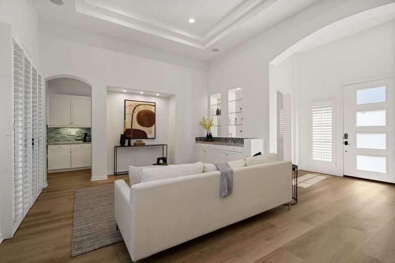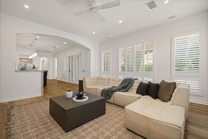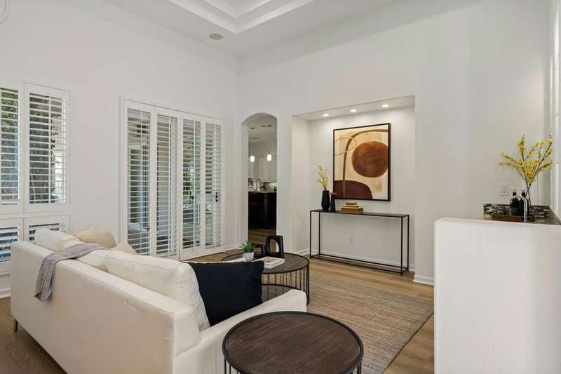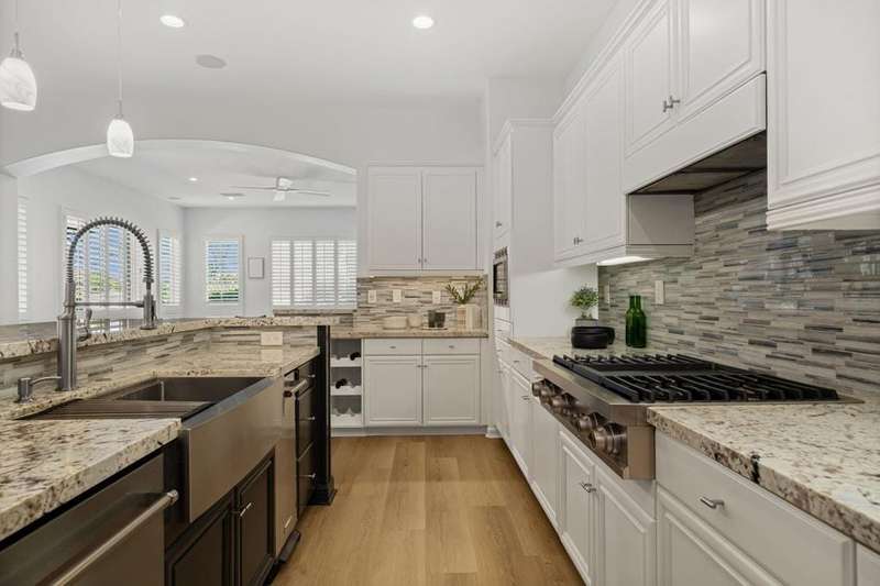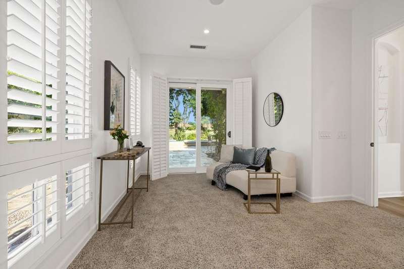 This gorgeous, updated home has golf course frontage on the beautiful 14th fairway. Upon opening the custom wrought-iron entry gate you will find yourself surrounded by tranquility. The lush courtyard with upgraded tile flooring welcomes you to private haven featuring a cozy fireplace, relaxing fountain & magnificent mountain views. The home has refurbished concrete pathways, back patio and driveway. Mature fruit trees on the side of the home are an added bonus. As you enter this stunning Trovita floor-plan you are met with windows that look out to the updated outdoor living space which includes a rare, infinity pool that comes with a pool cooler for those hot summer days, hot tub with cascading waterfalls, a wonderful outdoor kitchen perfect for entertaining. You can also stay cool with outdoor misting system. Back inside notice the new flooring, the chef's kitchen features commercial grade cooktop, granite countertops, modern, glass-tile back splash and a KitchenAid refrigerator. Custom white plantation shutters add to the elegance of this home. This beautiful 3 bedroom home also offers 3 spacious en-suites. The primary bedroom features two walk in closets, complete with built-ins & a separate retreat. Just minutes away from old town LQ restaurants & golf.