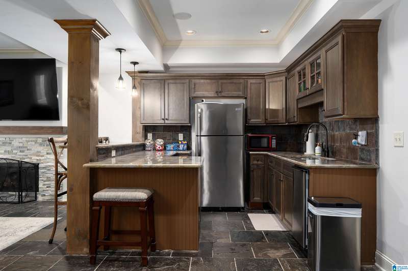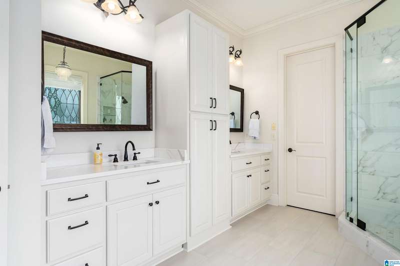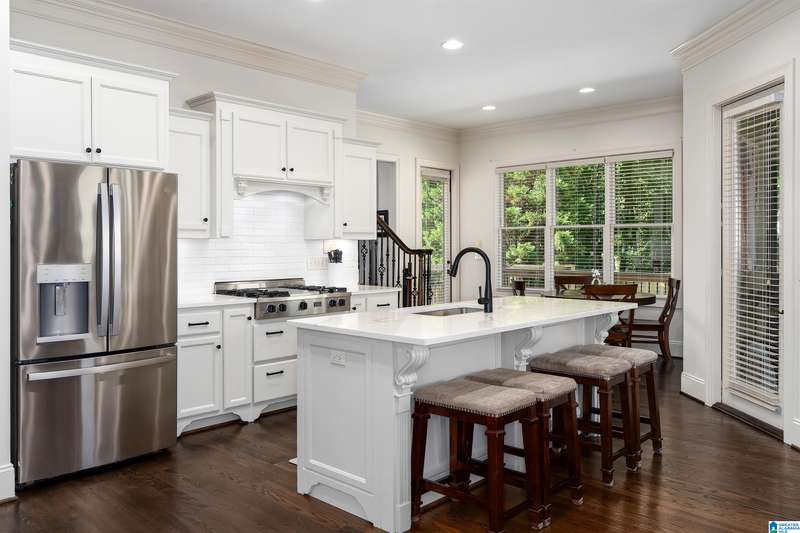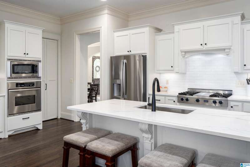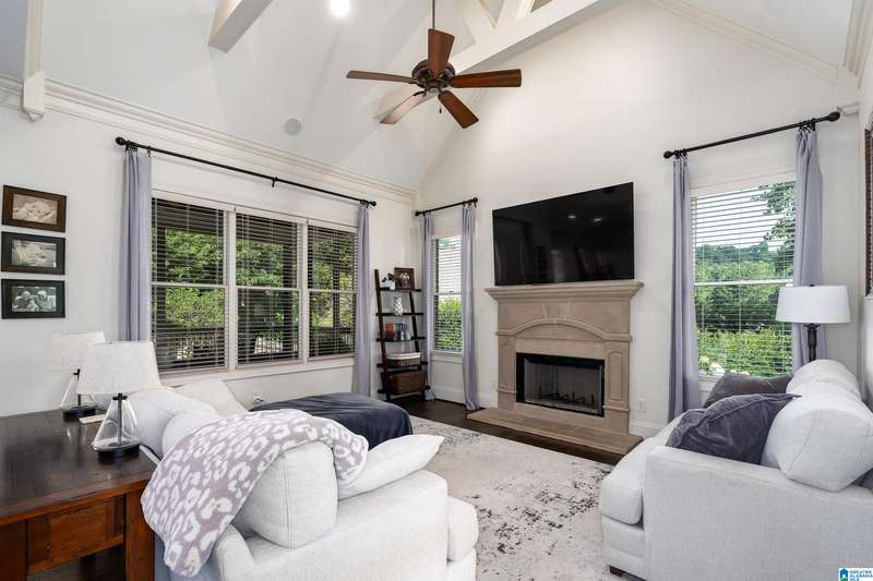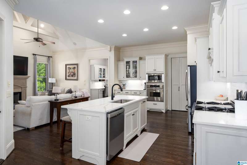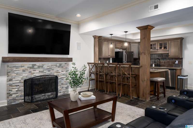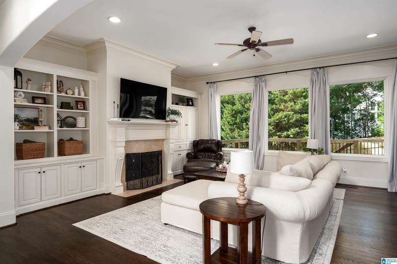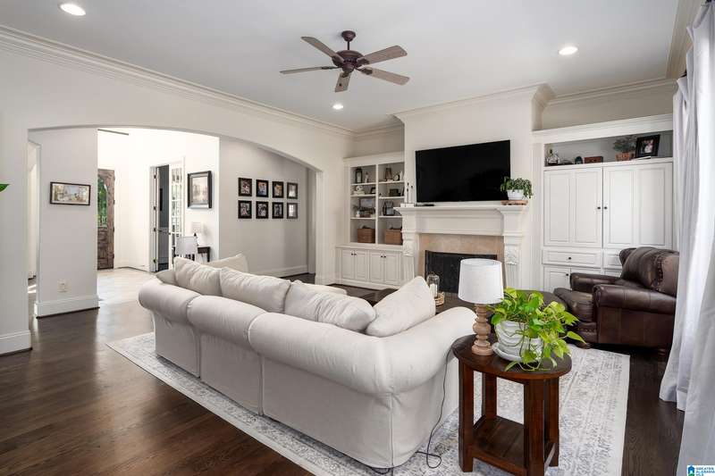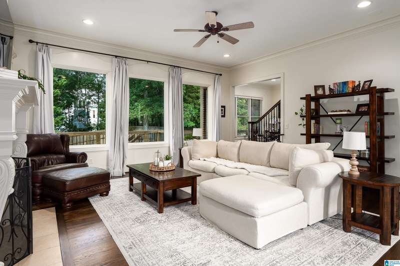 Welcome to Greystone Legacy. Custom built Brick 5755 sq ft home, quality finishes. ML features Hardwood Floors. Foyer opens into Study, Large Elegant Dining Room, exquisite crown molding. Living Rm has gas log fireplace & built-ins. Great Room with fireplace & lots of windows. Totally Remodeled Kitchen 2025,new Quartz countertops, refinished Cabinets, Breakfast Bar, SS appliances; Breakfast Nook. XL Laundry Rm w/wet sink & cabinets. Heart Rm has vaulted ceiling, gas burning Fireplace. Master Suite has Trey Ceiling, Huge Master Bath w/double shower & vanities plus separate tub. Upstairs: 4 Large Bedrooms, 2 Full Baths, walk-in attic.. Daylight Basement features In-law Suite, Den/Media, Kitchenette, Bedroom, Full Bath plus Exercise Rm. Extra storage. Screened Porch plus New Deck (2025), private landscaped fenced yard. Roof 2022, 3 HVAC's 2022, 1 HVAC 2025. Interior painted 2025. Quiet cul-de-sac location. Hoover Schools & City Services.