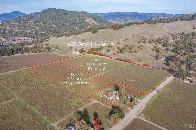 Nestled in the heart of the world-renowned Russian River Valley AVA, these exceptional vineyard/build site parcels on Grant Avenue offer a rare opportunity just minutes from the historic Healdsburg Plaza. Currently planted to contracted Pinot Noir and Sauvignon Blanc vines that provide both scenic beauty and income potential. A newly installed residential/agricultural well ensures a reliable water source for both vineyard operations and future residential development. Wet weather perc testing has been completed, with additional testing scheduled, streamlining the development process for your future home. Whether you're envisioning a private vineyard estate, pursuing winemaking aspirations, or continuing to supply premium fruit to top local wineries, these properties offer unparalleled potential. Large acreage opportunities this close to downtown Healdsburg are exceedingly rare, making this an exceptional investment in Sonoma County's wine country.