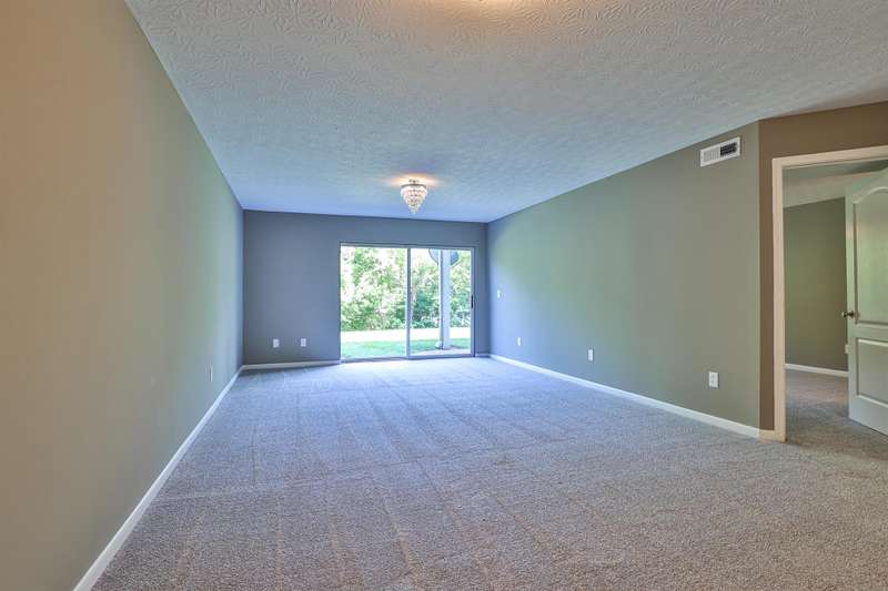 Pristine! Move in today! Lower level unit with walkout. Must descend stairs. Enjoy 2 BR condo with all fresh neutral paint, new carpet, new baths w/quartz counter tops, primary suite w/2 closets, one is a walk-in. Deluxe full baths. Kitchen is equipped w/dishwasher, refrigerator & oven range, eat-in w/counter bar. Walks out to patio w/green landscape privacy! Laundry has washer & dryer and built-in cabinets for storage. There is an assigned parking space for the unit, 1st space closest to the sidewalk. Prime parking spot! Central Park is one of Cincinnati's desired communities a minute to Cross County & 15 minutes to downtown Cincinnati. Complex offers pool, clubhouse w/ entertainment room & kitchen as well as exercise gym rooms. Walking paths, landscape areas. Don't miss this one!
