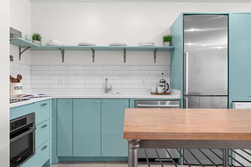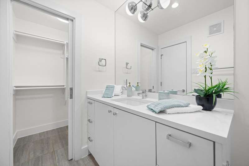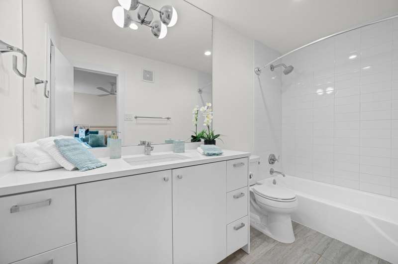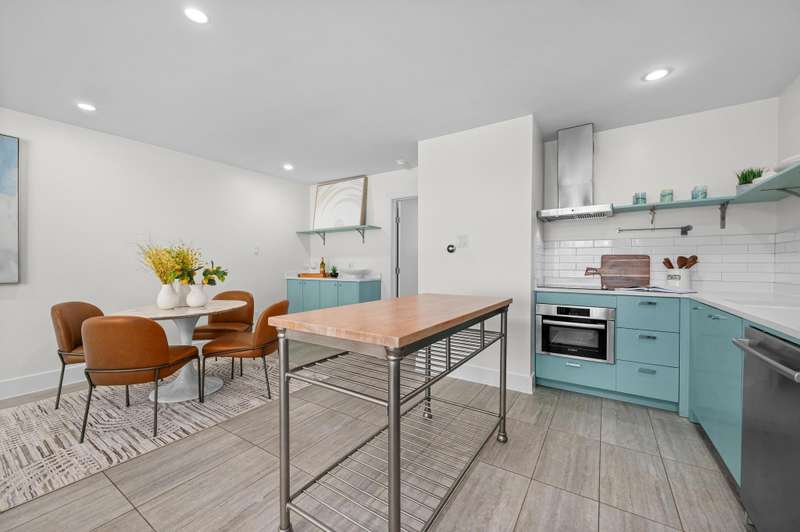 Originally redesigned in 2017 by Austin's preeminent interior designer Joel Mozersky, The Miriam captures a distinctive "Old Hollywood meets Old Austin" flair. This highly desirable 2nd floor corner unit features an expansive covered patio, ideal for morning coffee, evening wine, or al fresco work-from-home sessions. Inside, the open-concept kitchen is fitted with Bosch stainless steel appliances including a stove, microwave/oven, and refrigerator, along with custom cabinetry and curated fixtures. The bright, airy living space is perfect for entertaining, while the spacious bedroom offers a serene retreat with ensuite bath and walk-in closet.