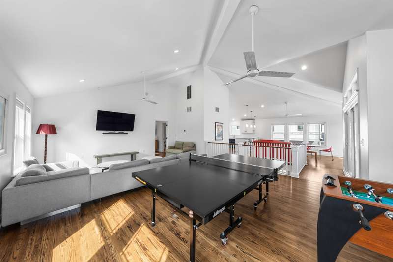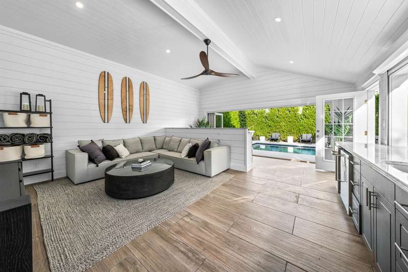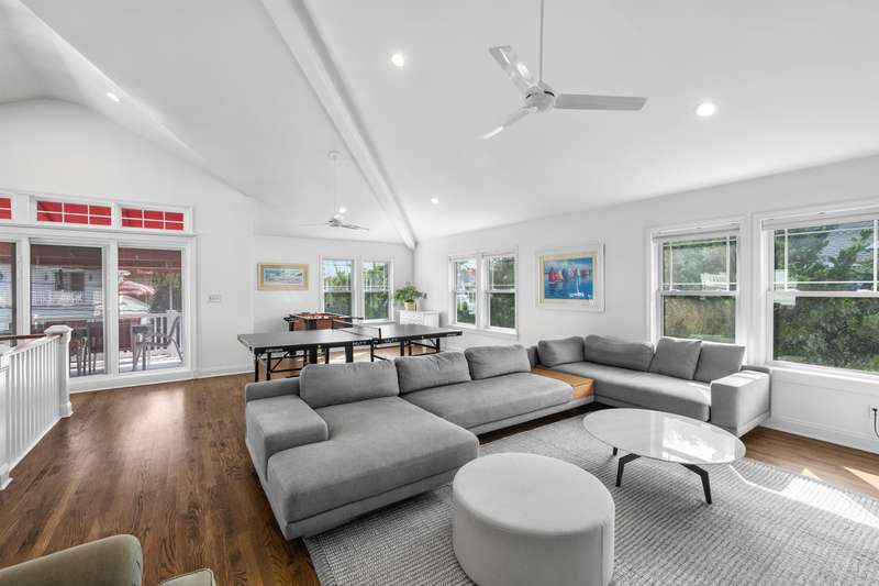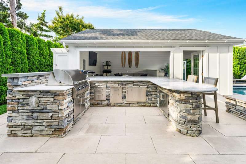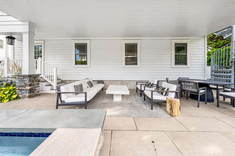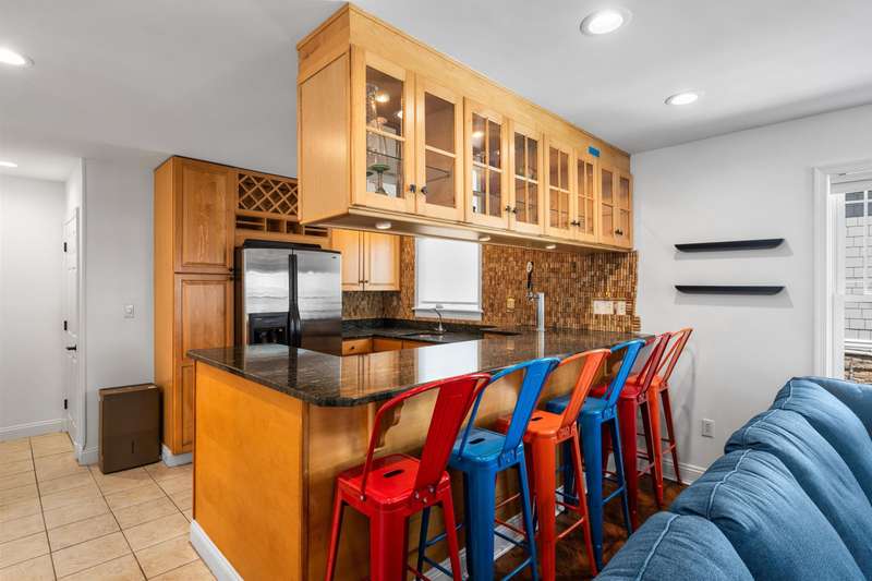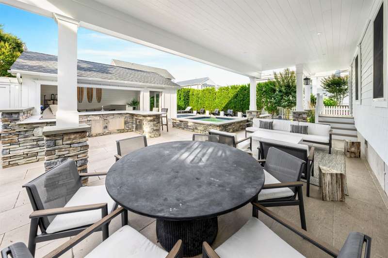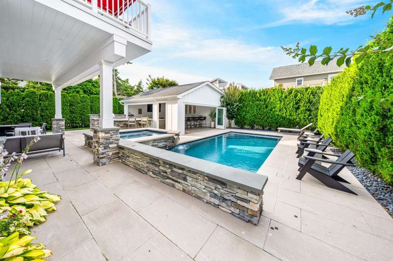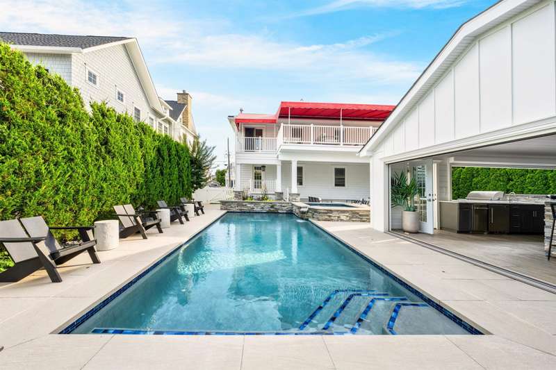 Backyard Oasis and Elevated Coastal Luxury in the Heart of Stone Harbor. Welcome to your personal sanctuary in the highly desirable Stone Harbor community, where refined coastal living, elegant entertaining, and everyday comfort converge in this magnificent five-bedroom, 3.5-bath luxury retreat. Spanning over 3,312 square feet of thoughtfully designed interiors and situated just steps from both the beach and bay, this property is the epitome of shore sophistication and outdoor indulgence. Step into a resort-inspired backyard oasis that elevates outdoor living to an art form. Designed for both grand entertaining and quiet relaxation, the space features a heated swimming pool with a cascading hot tub, surrounded by manicured landscaping and multiple gathering areas. At the center of it all is a custom masonry outdoor kitchen, a true culinary dream, anchored by a built-in grill, refrigerator, beverage center, and ice maker. This outdoor chef's station is flanked by generous stone countertops, offering plenty of prep and serving space for unforgettable summer soirées. The cabana is a standout feature, with accordion-style folding glass doors that open wide to blend indoor comfort with the open-air serenity of the yard. Complete with a TV and lounge area, the cabana is ideal for both casual family afternoons and lively evenings under the stars. Inside, the home showcases a clean, contemporary coastal aesthetic with curated finishes and a relaxed yet polished ambiance. The first floor includes four bedrooms, two full baths, a laundry room, and a charming front porch. A spacious den with a thoughtfully appointed wet bar, full-size refrigerator, granite countertops, and abundant cabinetry provides the ideal space for hosting guests or casual lounging. On the second floor, the open-concept great room, dining area, and gourmet kitchen impress with vaulted ceilings as well as natural light and extend to expansive covered decks with awnings-perfect for alfresco dining or morning coffee with a sea breeze. The primary suite is a tranquil haven with its own ensuite bath, providing privacy from the rest of the home. A thoughtfully placed powder room adds functionality for guests and the oversized pantry with a secondary laundry area offers everyday ease and organization. Perfectly positioned just a short stroll from Stone Harbor's charming boutiques, artisan cafes, fine dining, neighborhood taverns, homemade ice cream and recreation, this home captures the essence of Jersey Shore luxury. A rare opportunity to own a spectacular coastal residence in one of the shore's most sought-after communities.